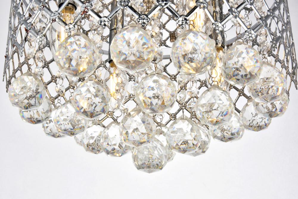 Fill any room with mesmerizing light when you illuminate it with a gorgeous Tully flush-mount ceiling fixture. Distinguishing this collection is the intricate latticework frame studded with Moroccan-style quatrefoils. With Chrome cylinders and Crystal beads sparkling Inside and multifaceted Crystal balls drawing the eye down to the bottom, this fixture bounces and refracts light from four interior bulbs (Not included) in countless directions. Uniquely graceful yet bold, the Tully lamp creates a prismatic Golden glow that enhances the look of everything around it. It’s ideal for dining rooms, living rooms, foyers, hallways, and other applications where you want resplendent light and dazzling visual effects.