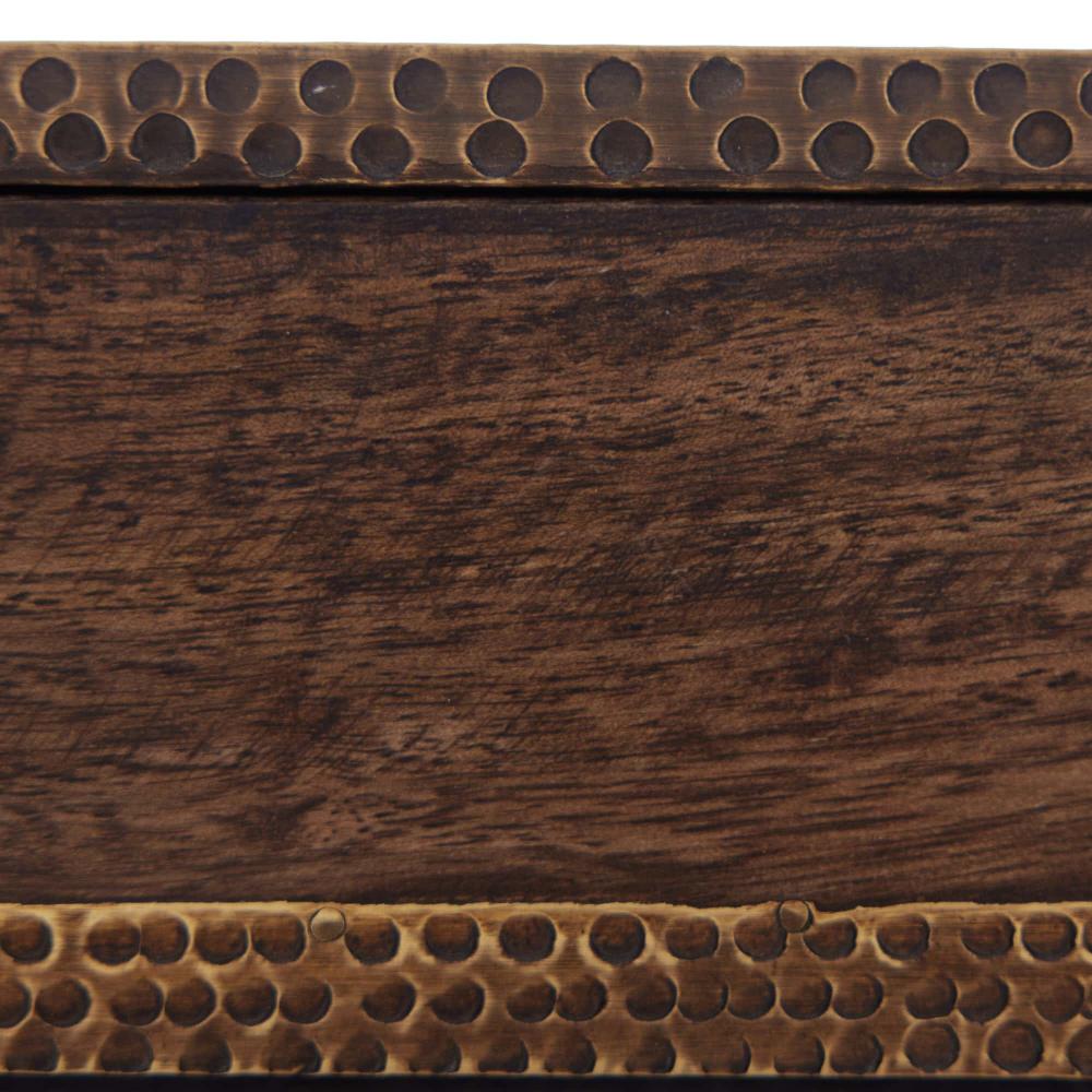 EQUAL PARTS STYLE AND FUNCTION, THE DECORATIVE TURNEY BOXES MAKE HANDSOME STORAGE ACCESSORIES. WITH AN UNMISTAKABLE MIDCENTURY SENSIBILITY, THE BOXES ARE CRAFTED IN WALNUT STAINED MANGO WOOD WITH A STIPPLED, ANTIQUE BRASS-CLAD PLATE ORNAMENTING THE TOP OF EACH CATCHALL. FINISH WILL VARY.