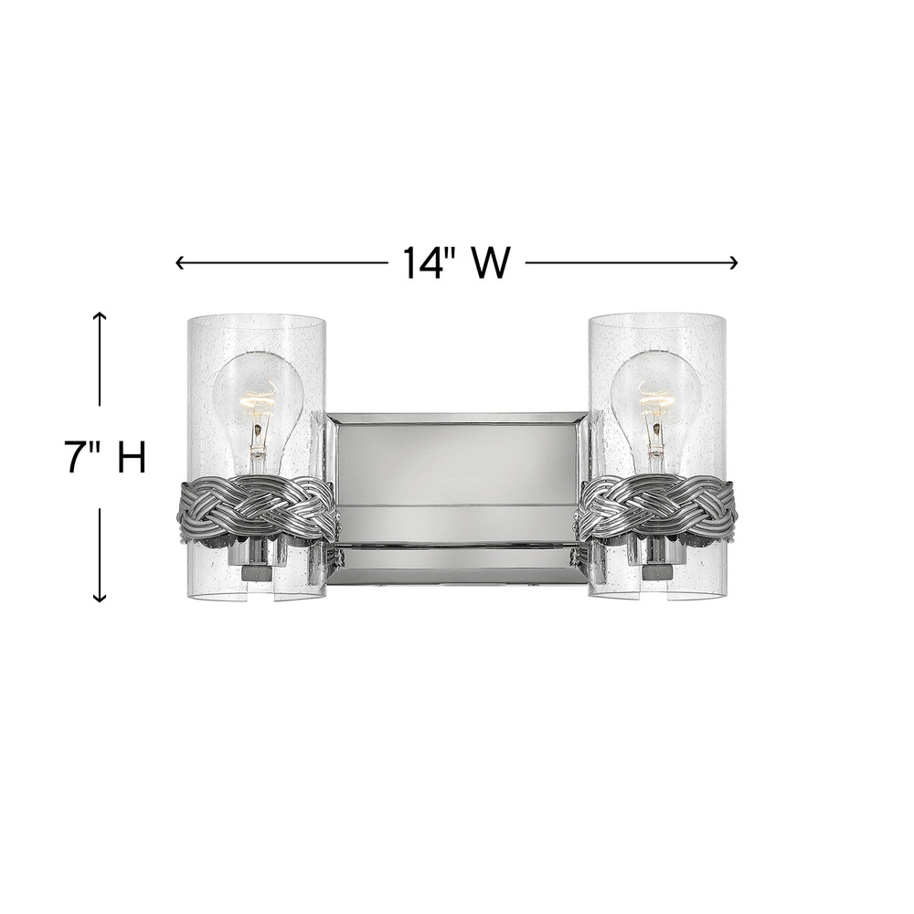 A new nautical classic, Nevis draws inspiration from seafaring style. The intricately crafted interwoven cast bracelet details the strands of a sailor’s knot and envelops vertical clear seedy glass sleeves. A gleaming Polished Nickel backplate adds to the jewel-like effect. Ideal for filament bulbs.