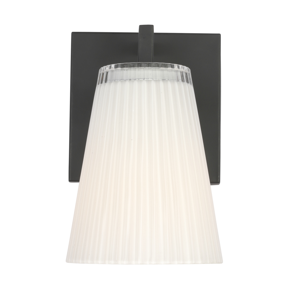 Upson features clear textured glass shades finished with a white interior that offers a soft layered glow. Available in Midnight Black, Satin Brass, Brushed Nickel, and Chrome. Upson offers flexibility in any application with one-light sconces, and two, three, and four-light vanities that are all available to be mounted up or down.