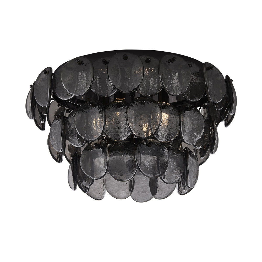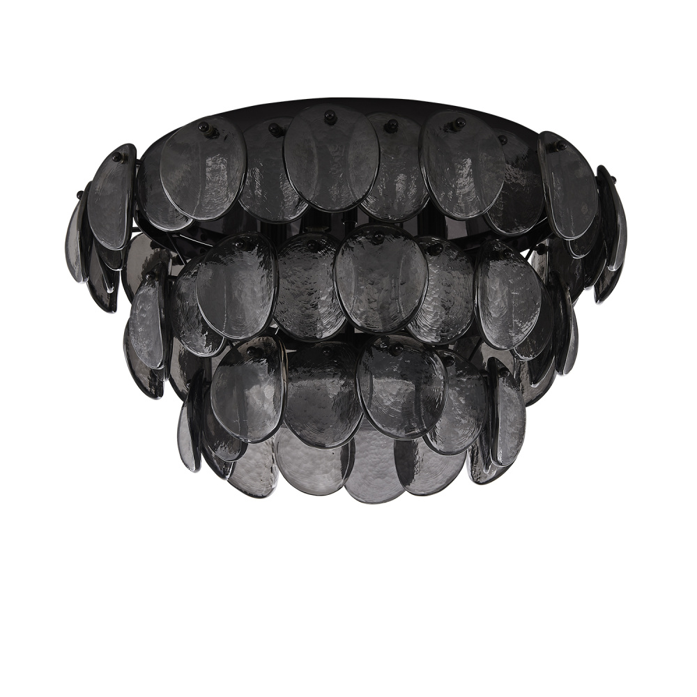 Illuminate your space with our fish scale-inspired Uroko collection. Glass discs are expertly crafted to provide a subtle yet striking lighting effect, creating a warm and inviting ambiance wherever it is placed. Our Polished Winter Brass (PWB) or Black Nickel (BN) finishes coordinate with the glass to create a shimmering focal point to any room.