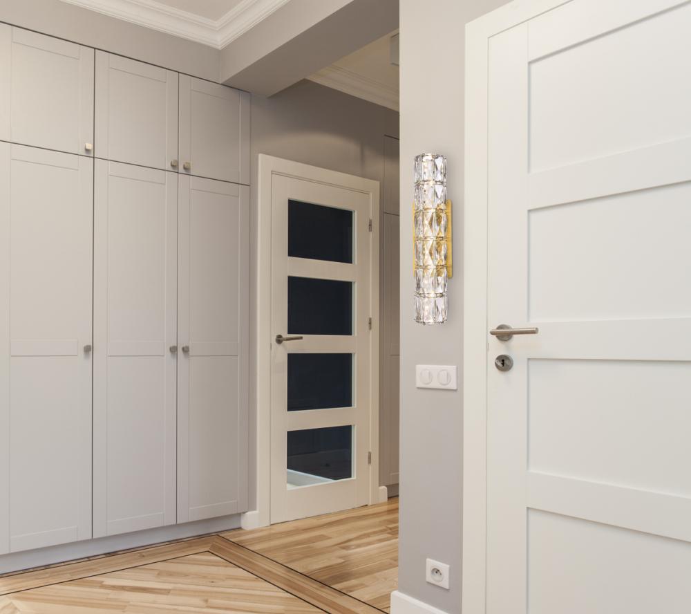 Valetta hanging fixtures dress up a living room, dining room, or bedroom without overwhelming the surrounding décor. This collection features an octagonal tube-shaped stainless-steel frame that’s covered almost entirely with shining rectangular clear crystals. A rectangular mounting plate is connected to the frame by slender cables that keep everything secure. A sleek metal finish completes this modern look with warm led lighting. Available in three sizes.