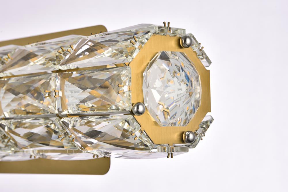 Valetta hanging fixtures dress up a living room, dining room, or bedroom without overwhelming the surrounding décor. This collection features an octagonal tube-shaped stainless-steel frame that’s covered almost entirely with shining rectangular clear crystals. A rectangular mounting plate is connected to the frame by slender cables that keep everything secure. A sleek metal finish completes this modern look with warm led lighting. Available in three sizes.