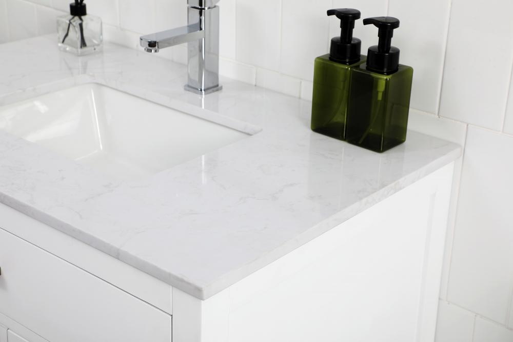 Our vanity boasts a 0.7-inch thick engineered marble top, adding a touch of modern elegance to your bathroom decor. This durable and luxurious surface exudes style while providing a sturdy foundation for your daily routines.