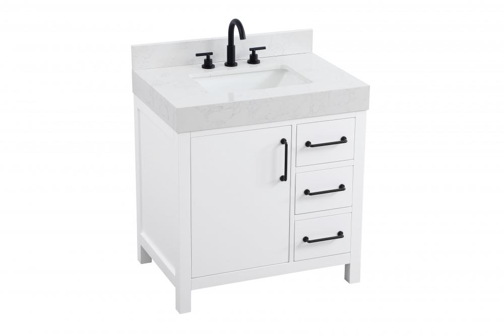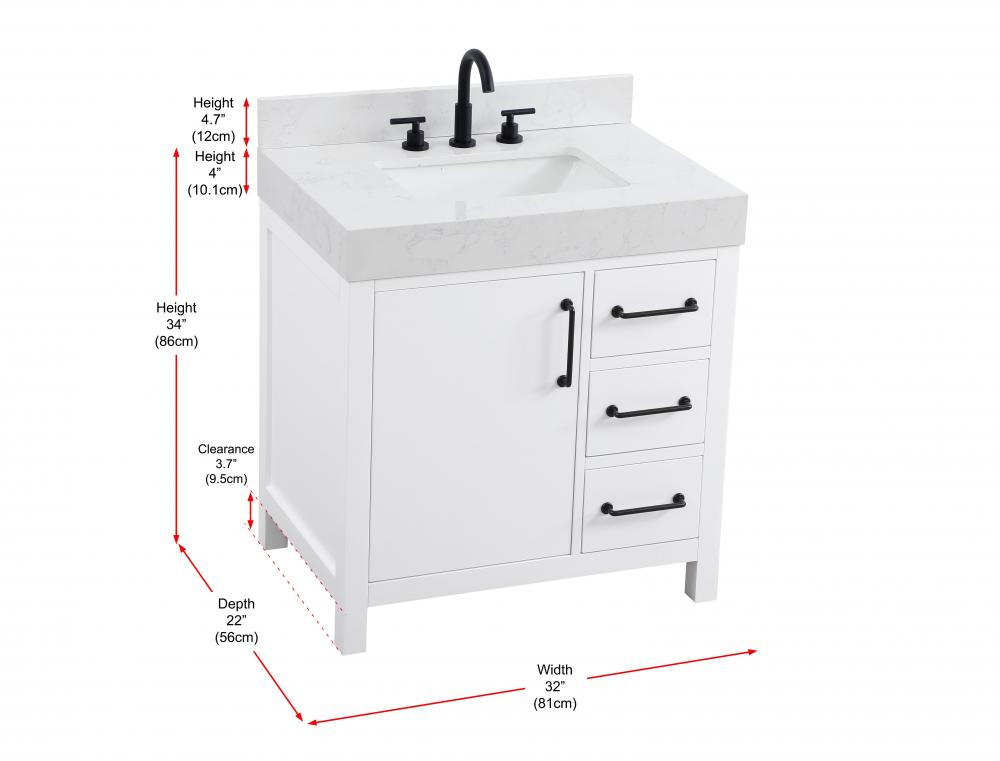 Vanity Cabinet 1DR 3DW 32"W x 22"D x 34"H Whitew/BS