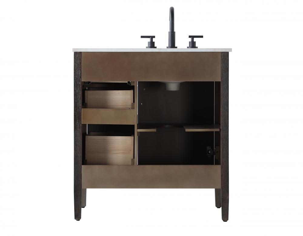 Designed with transitional elegance in mind, this bathroom vanity seamlessly blends traditional elements with modern functionality. Available in five stunning finishes, from the clean sophistication of Crisp White to the natural warmth of Honey Oak, the fluted door and drawer panels add subtle texture and charm. The white engineered marble countertop with natural veining exudes luxury, while the soft-closing doors and drawers with sleek black metal pulls offer a quiet, refined experience. Practicality is never compromised, with features like the U-shaped shelf for plumbing, deeper bottom drawer for ample storage, and pre-drilled faucet holes for easy customization. Whether your style leans modern or classic, this vanity is the perfect balance of beauty and function, appealing to customers with a taste for quality and style.