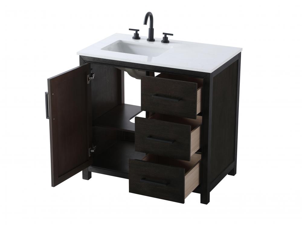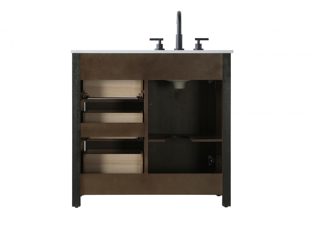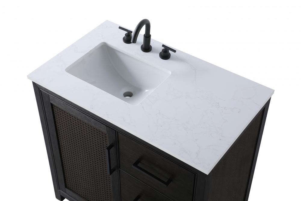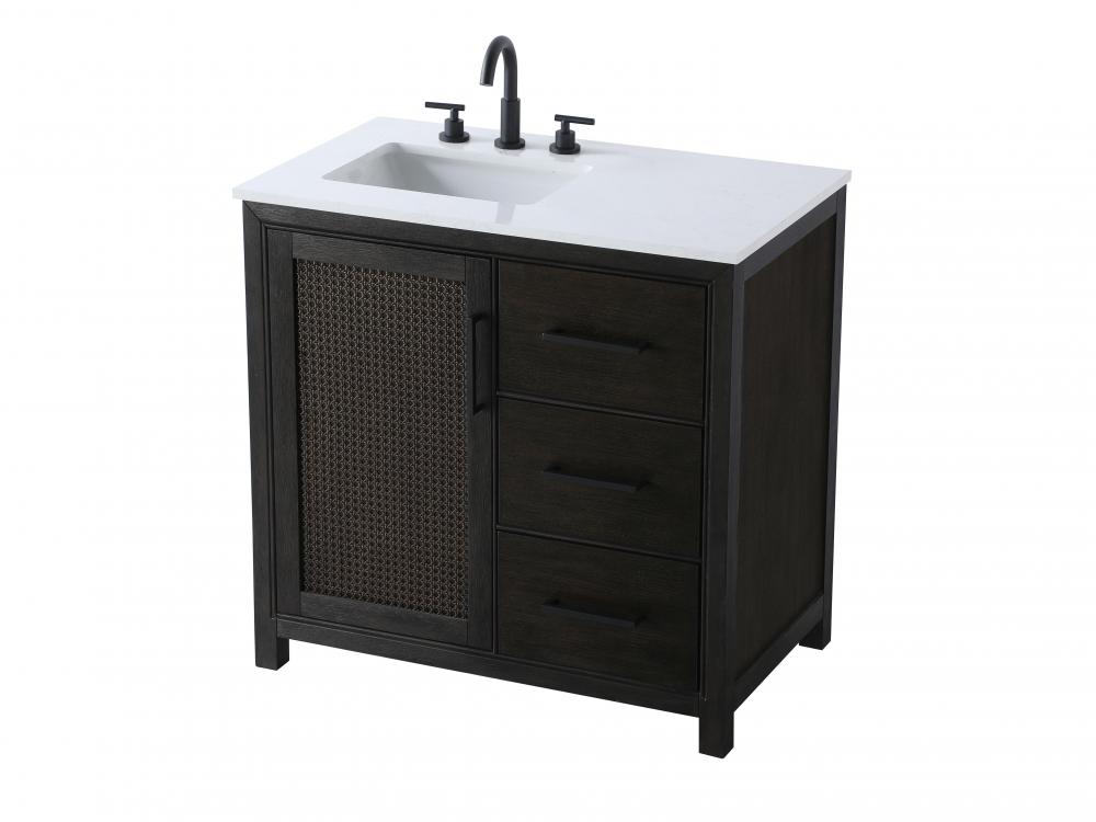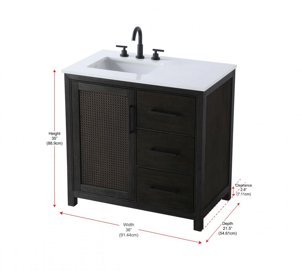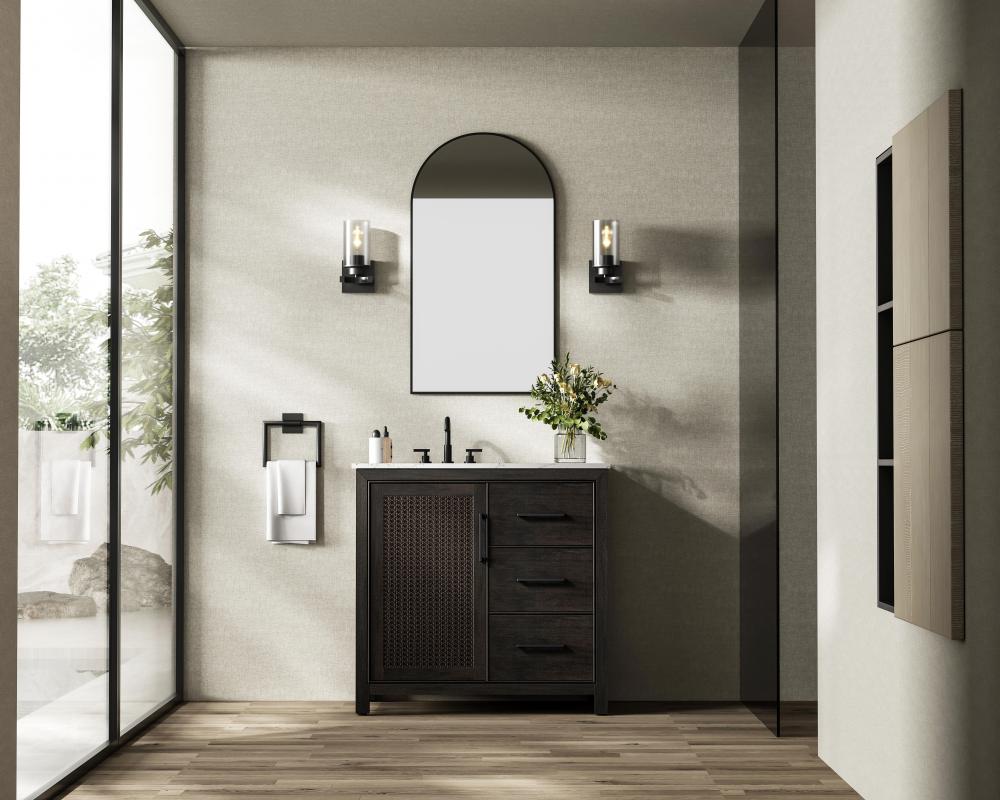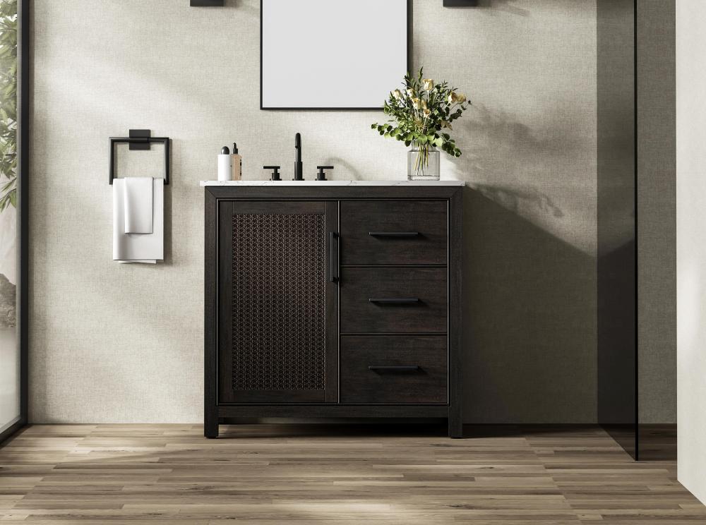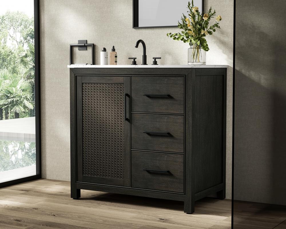 Perfect for those with an eye for detail and quality, this transitional vanity blends modern design with timeless elegance. Available in five stunning finishes, from Crisp White to Linen Oak, the wood grain visuals of the oak options bring warmth and character to any bathroom. The caning design on the Shaker-style door panels adds texture and a touch of refinement, while the soft-closing doors and drawers ensure smooth, quiet functionality. Topped with a white engineered marble countertop, the vanity offers both luxury and practicality, complete with pre-drilled faucet holes for customization. A concealed overflow and U-shaped shelf for plumbing make installation effortless, and the slender black metal pulls provide a sleek contrast.