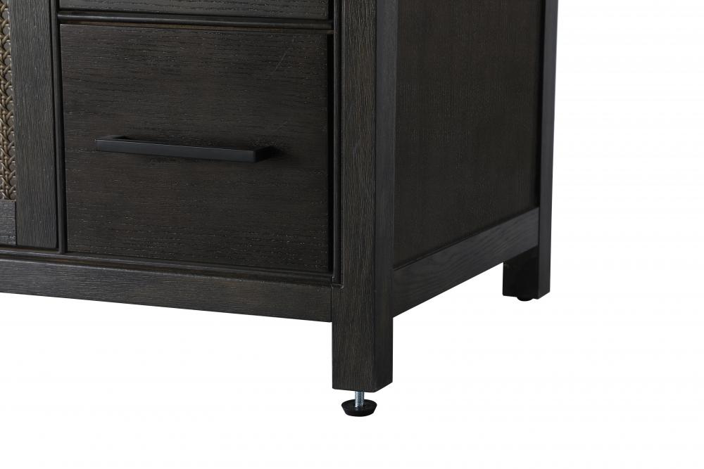 The shaker-style door panels feature a subtle caning design, adding texture and visual interest while maintaining a clean and timeless aesthetic.