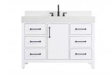 The engineered marble countertop stands out with its bold 4-inch thickness and natural veining, creating a commanding presence in any bathroom.