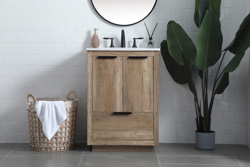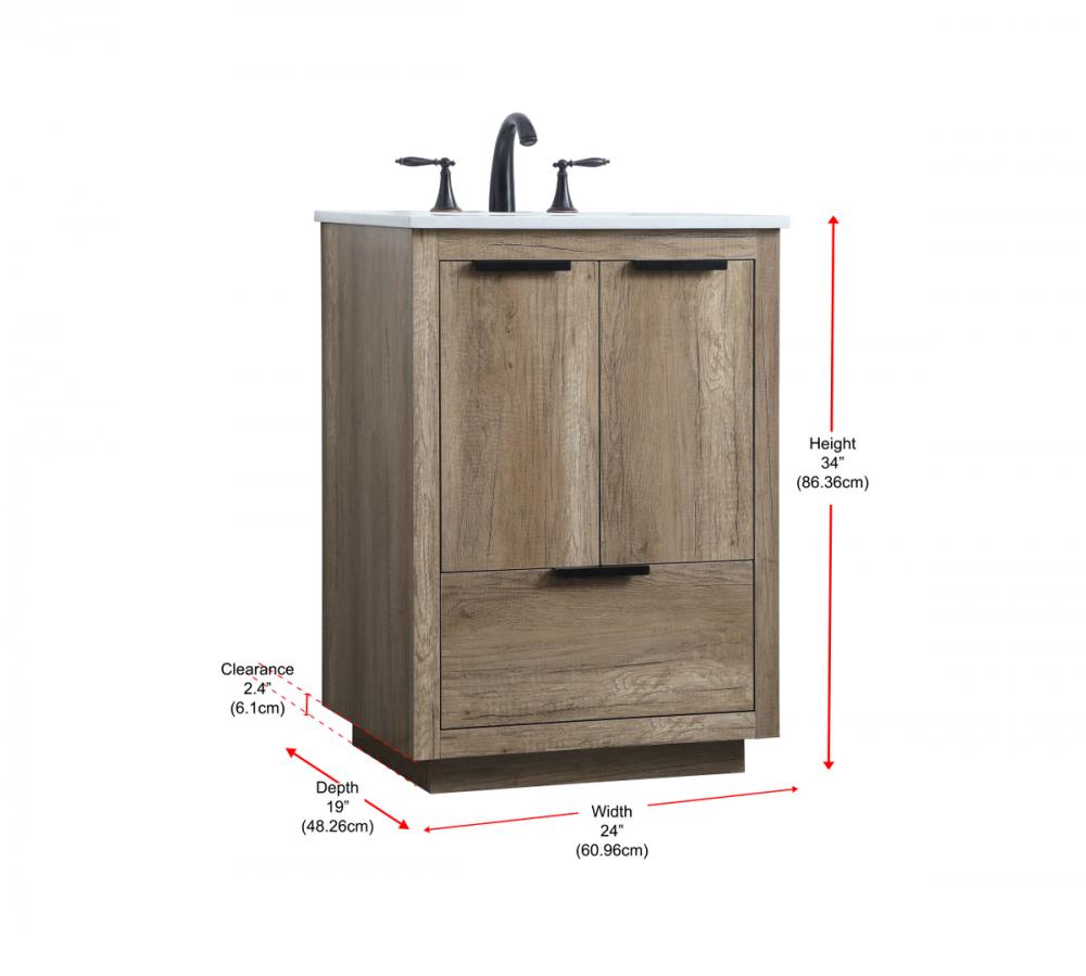 Compact yet impactful, our vanity, measuring 24 inches long, is designed to optimize space without compromising on style, making it the perfect addition for smaller bathrooms or as a stylish accent in any space.