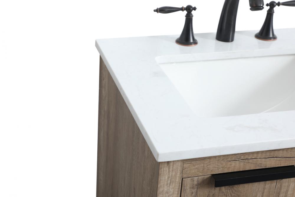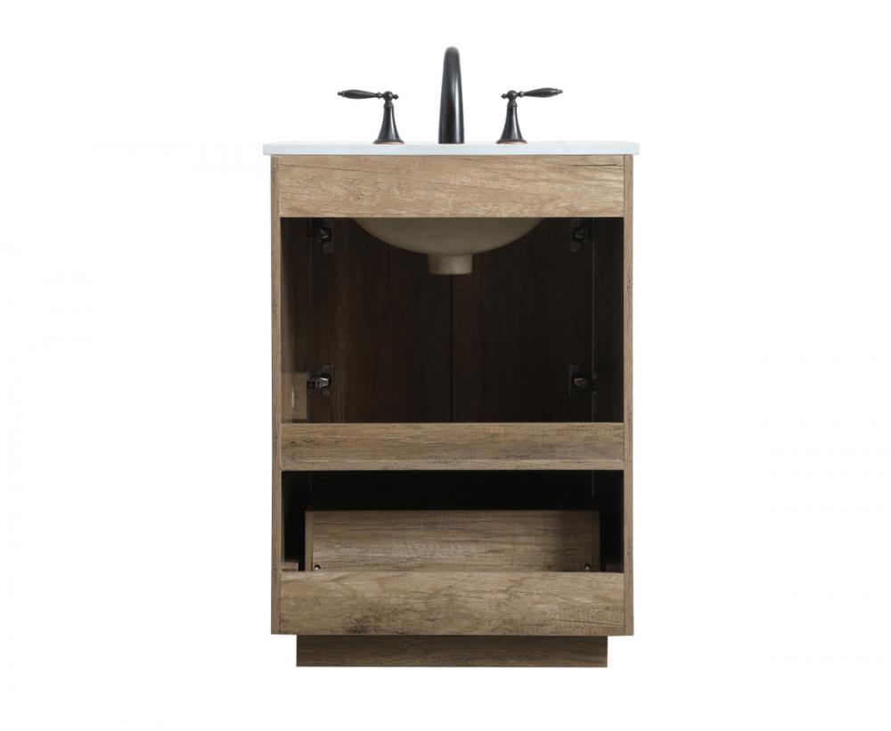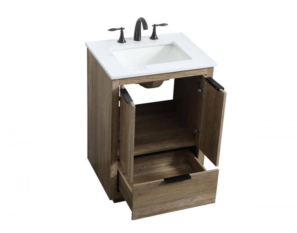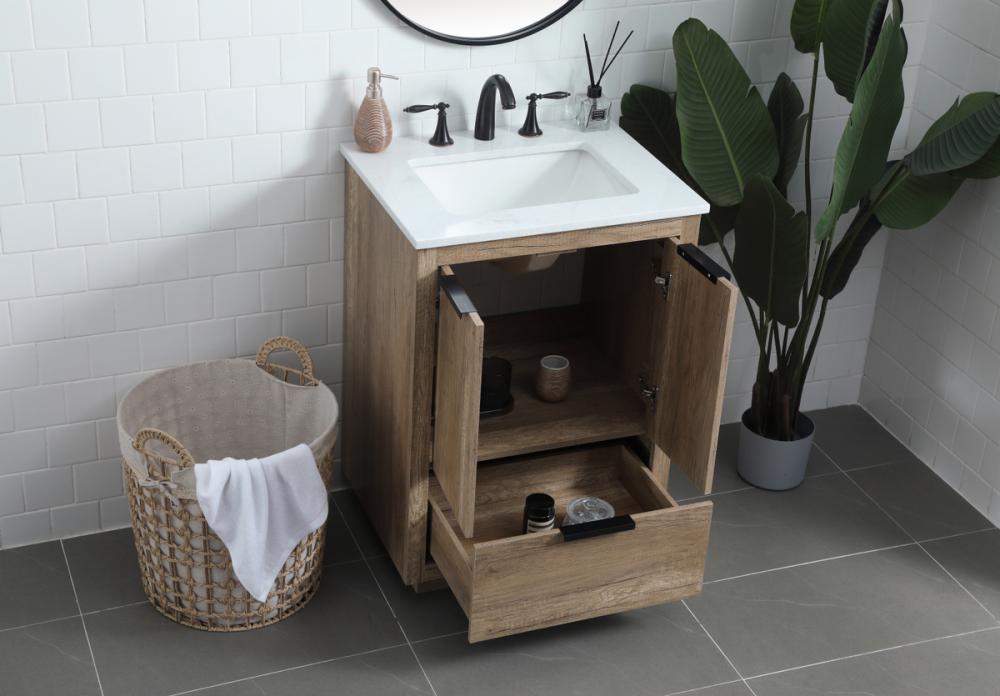 Upgrade your bathroom effortlessly with our stylish 24-inch vanity, showcasing an engineered marble top with a chic straight edge cut. The combination of one functional soft-close drawer and a convenient cabinet offers a perfect balance of design elegance and versatile storage. With an undermount porcelain sink, this vanity seamlessly blends timeless elegance with practical functionality. Adorned with three sleek pulls, it adds a modern touch, enhancing the overall aesthetic. With three pre-drilled holes, it allows you to personalize your bathroom by choosing the perfect widespread faucet. Redefine your bathroom experience with this compact yet impactful vanity that optimizes space without compromising style.