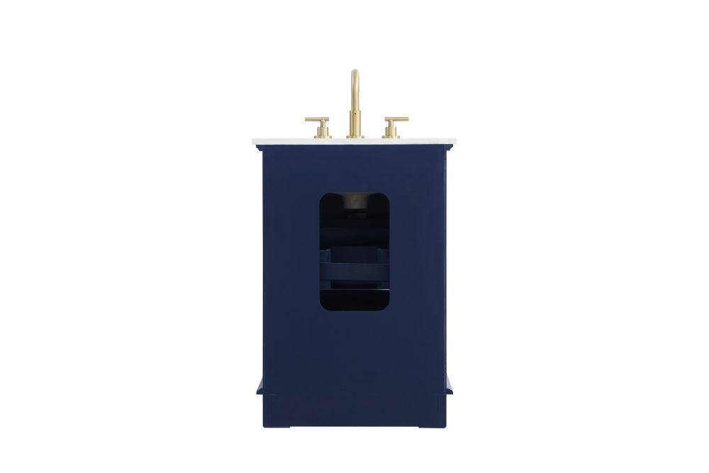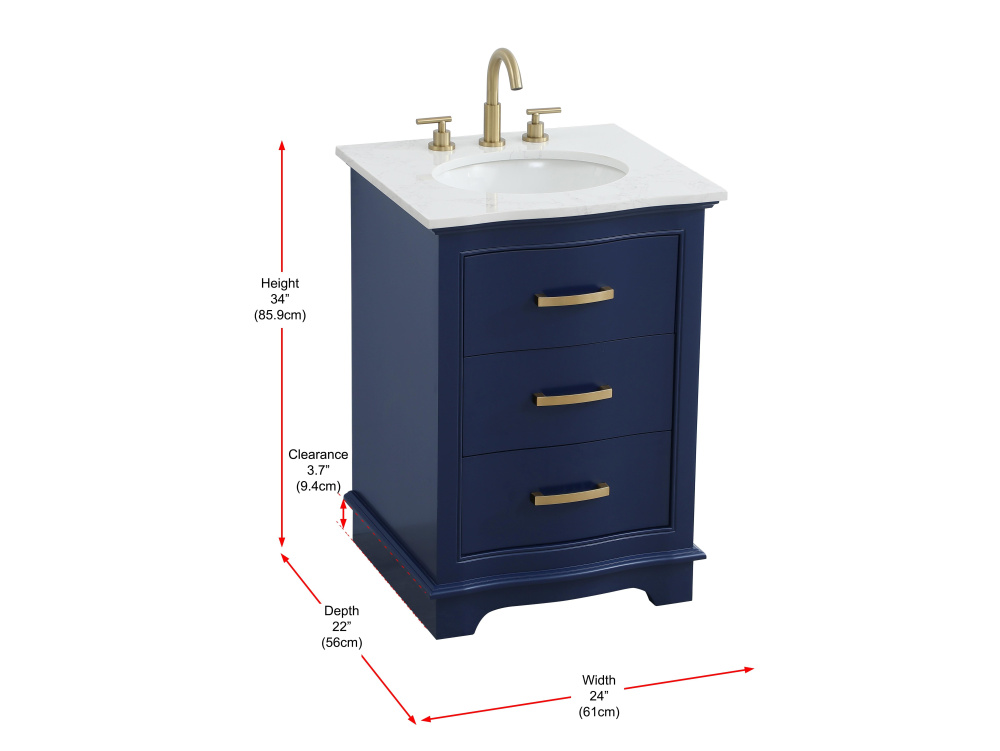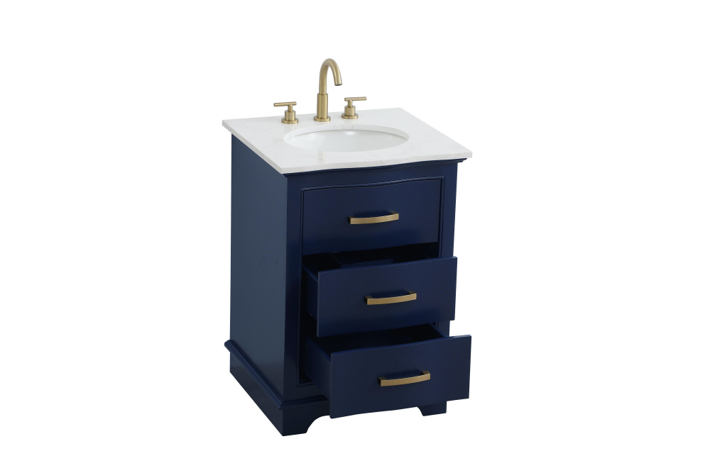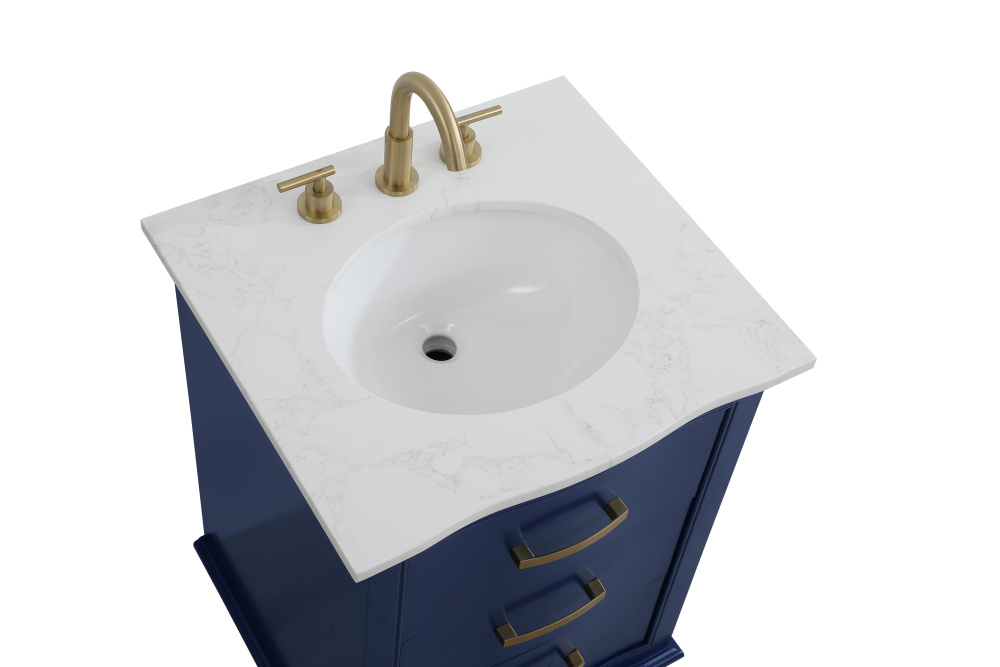 Enhance your bathroom with this expertly crafted vanity that combines functionality and timeless design. The slightly curved silhouette adds softness and sophistication, while the faux-marble countertop showcases unique veining for a one-of-a-kind look. Complete with a porcelain undermount sink, this vanity is available in White, Blue, and Grey finishes to complement any décor. Soft-closing drawers offer quiet and smooth storage access, including a U-shaped middle drawer designed to fit around plumbing. Built with solid wood and MDF for lasting durability, it also features adjustable foot levelers for stability and ships fully assembled, making it an effortless and stylish upgrade to your space.