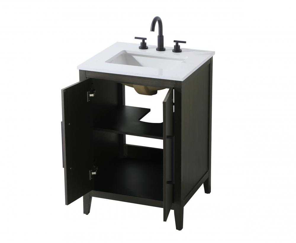 Bring both elegance and practicality to your bathroom with this transitional vanity, available in a selection of rich finishes that highlight the beauty of faux wood grain in shades of mocha, chestnut, and honey, along with classic white and modern grey. The flat door panels and sleek black metal pulls create a minimalist yet refined aesthetic, while the soft-closing drawers and tapered legs with levelers provide smooth, functional operation. Topped with a luxurious white engineered marble countertop and featuring a porcelain sink, this vanity combines timeless style with modern efficiency. Thoughtfully designed with U-shaped cutout for plumbing, it offers ample storage and easy installation, making it the perfect centerpiece for any bathroom.