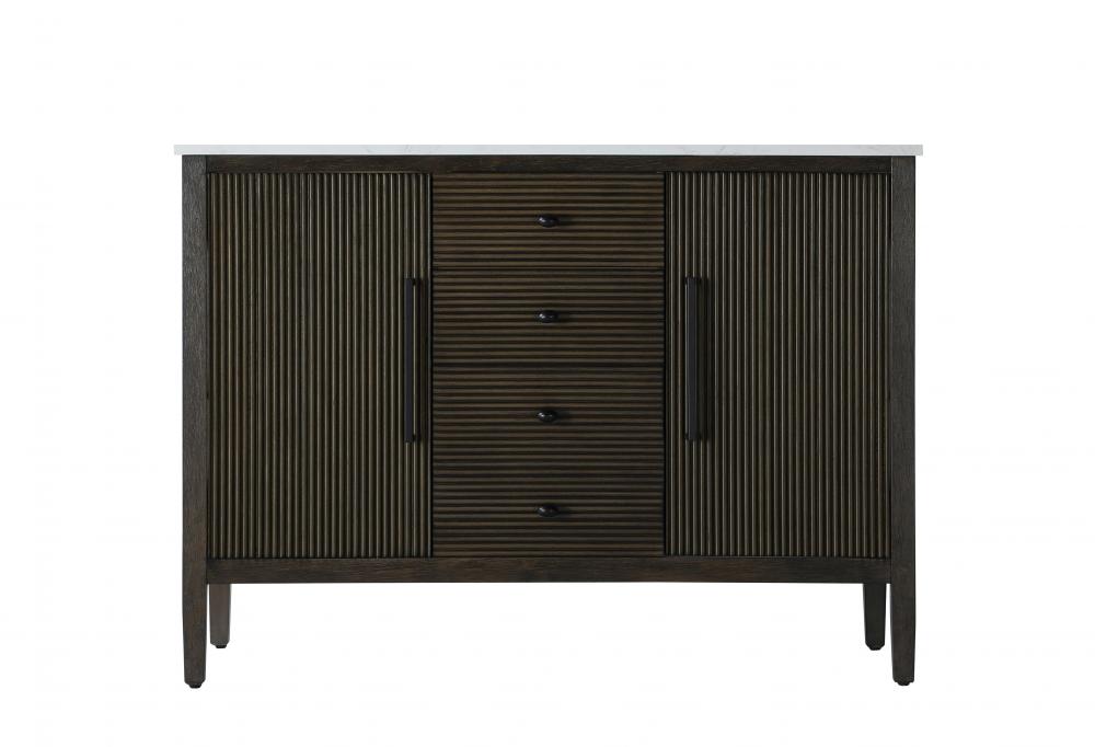 The textured fluted design on the door and drawer panels adds visual interest and elegance, creating a balance of classic charm and contemporary style.