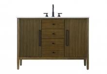 The vanity is topped with a stunning white engineered marble countertop with natural veining that adds luxurious detail and durability.
