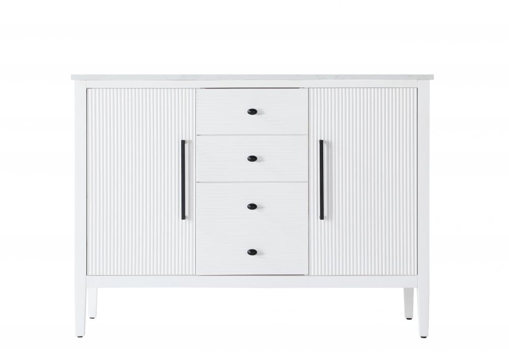 The textured fluted design on the door and drawer panels adds visual interest and elegance, creating a balance of classic charm and contemporary style.
