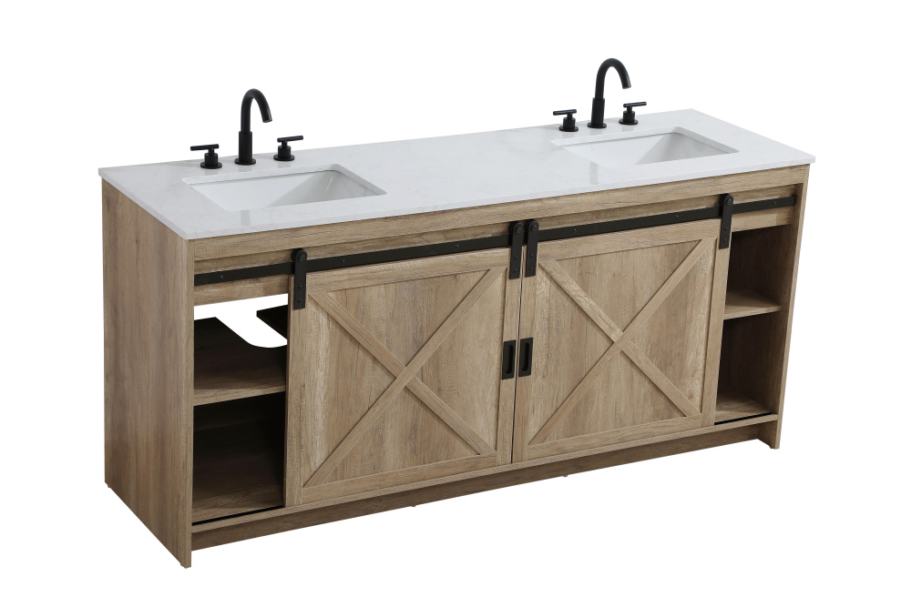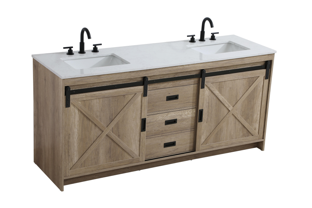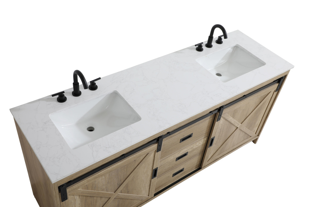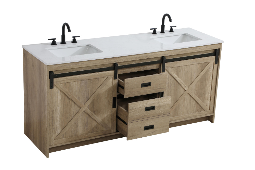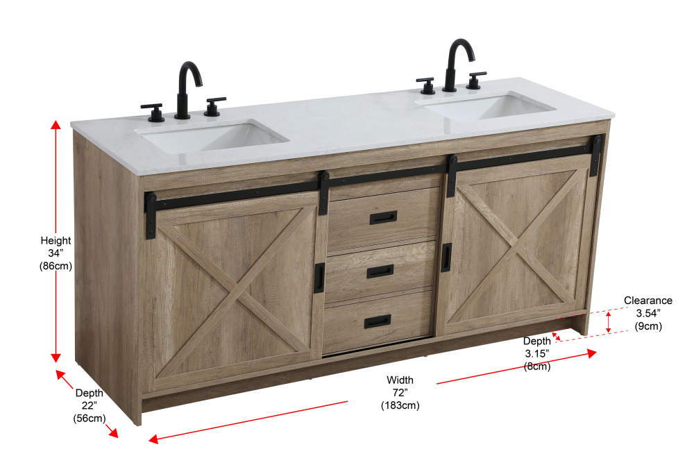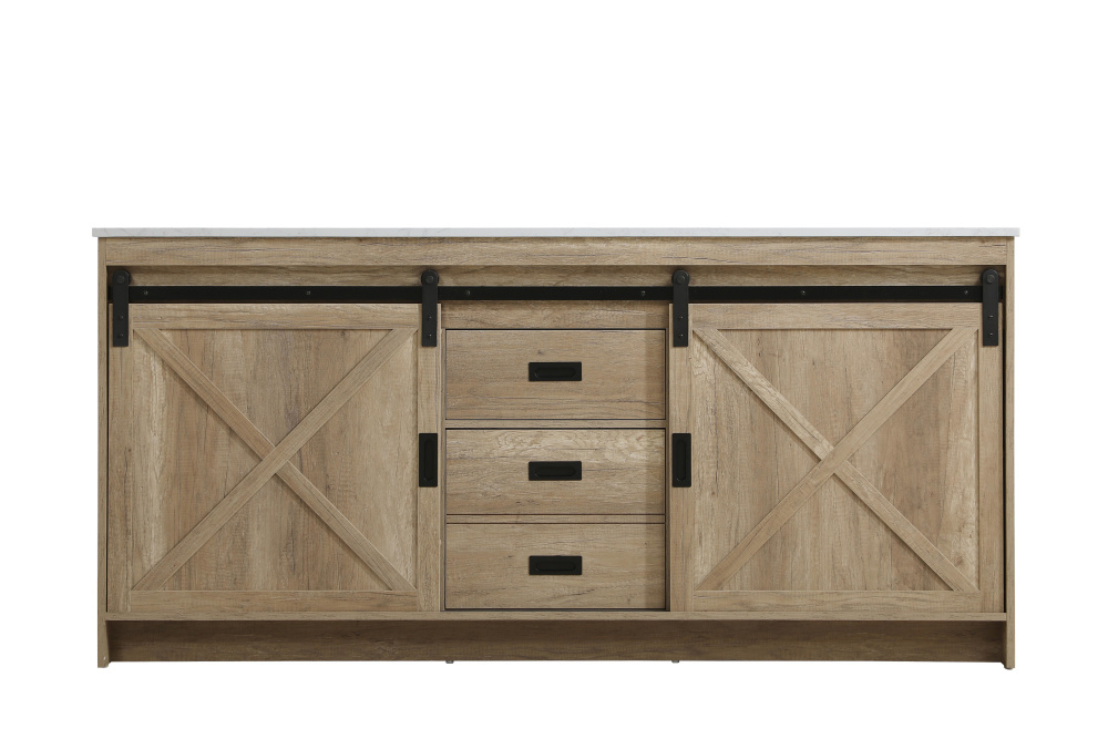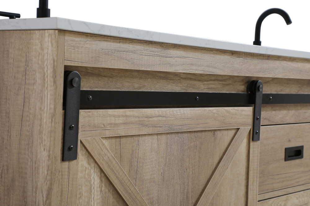 Transform your bathroom with this rustic barnyard-style vanity, designed to balance aesthetic appeal and functionality. Featuring a sliding barn door with black metal hardware and complementary handle pulls, this piece blends rugged charm with practical design. The engineered marble countertop displays unique marbling, while the porcelain undermount sink offers easy maintenance and durability. Available in Espresso, Natural Oak, and Rustic Grey finishes, this vanity suits a range of styles. It includes a deep storage drawer for larger items, a hidden shelf for towels or décor, and adjustable foot levelers for added stability on uneven floors. With pre-drilled faucet holes for easy setup, this vanity delivers style and substance to enhance your bathroom.
