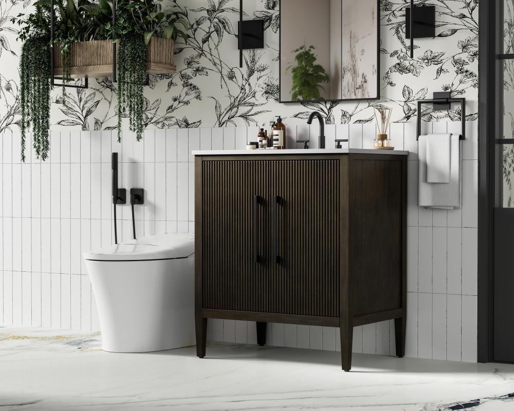 Designed with transitional elegance in mind, this bathroom vanity seamlessly blends traditional elements with modern functionality. Available in five stunning finishes, from the clean sophistication of Crisp White to the natural warmth of Honey Oak, the fluted door and drawer panels add subtle texture and charm. The white engineered marble countertop with natural veining exudes luxury, while the soft-closing doors with sleek black metal pulls offer a quiet, refined experience. Practicality is never compromised, with features like the U-shaped shelf for plumbing, and pre-drilled faucet holes for easy customization. Whether your style leans modern or classic, this vanity is the perfect balance of beauty and function, appealing to customers with a taste for quality and style.