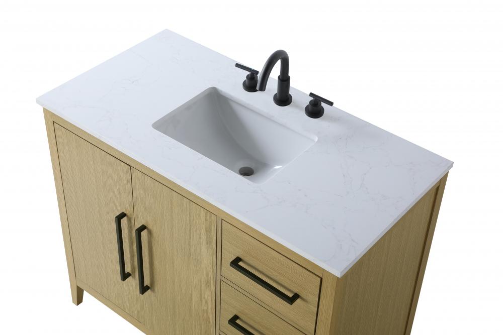 Topped with a white engineered marble countertop featuring elegant veining, this vanity adds a luxurious yet durable surface that’s easy to maintain.
