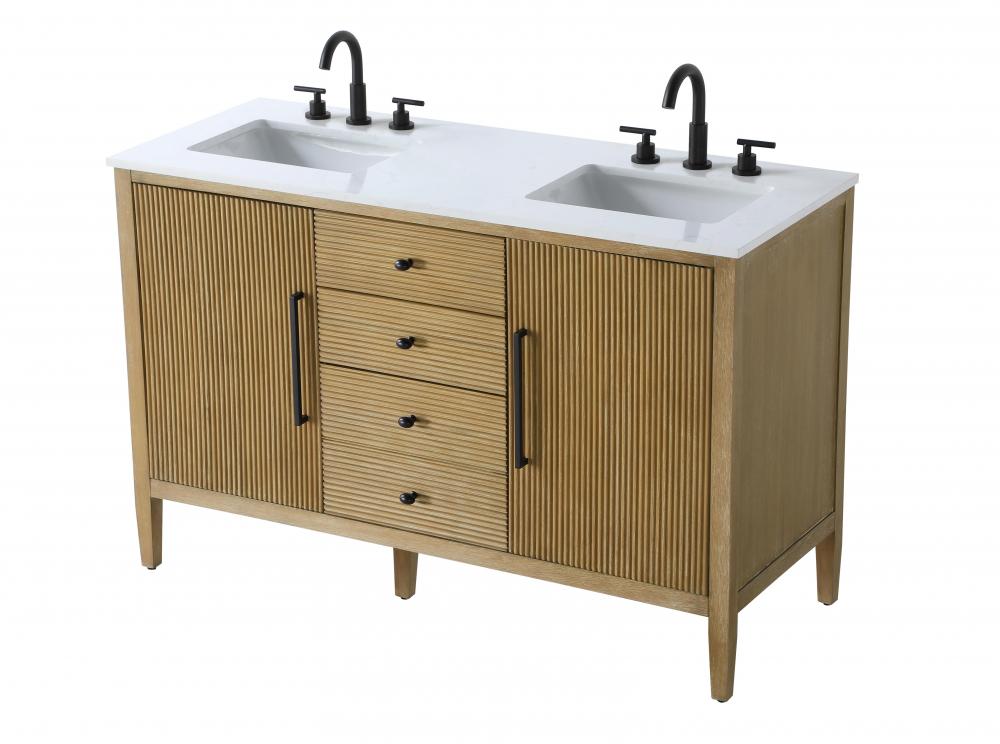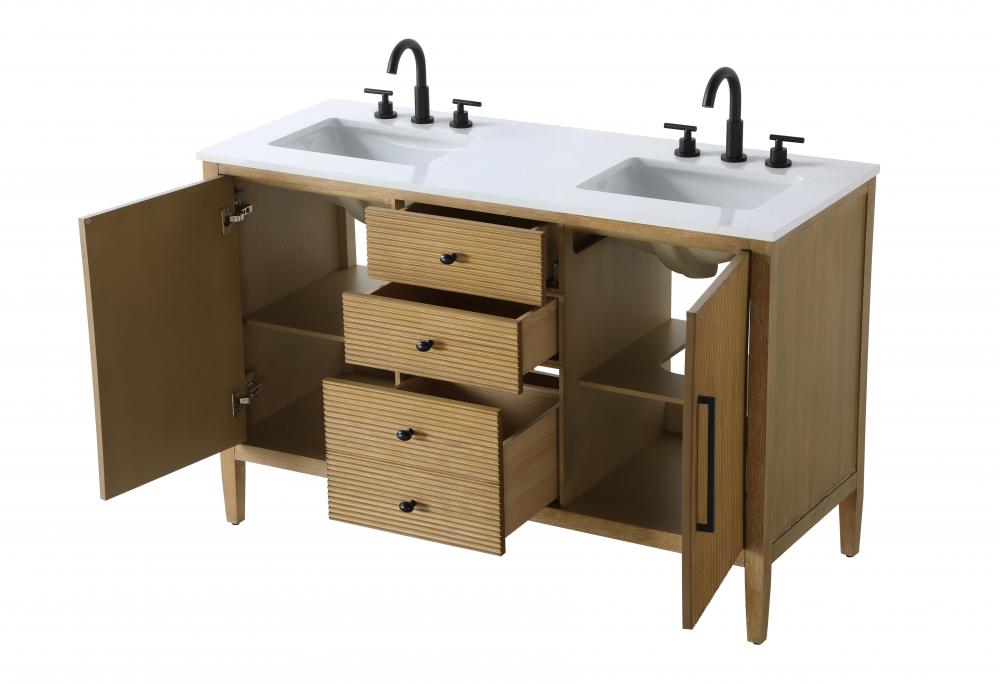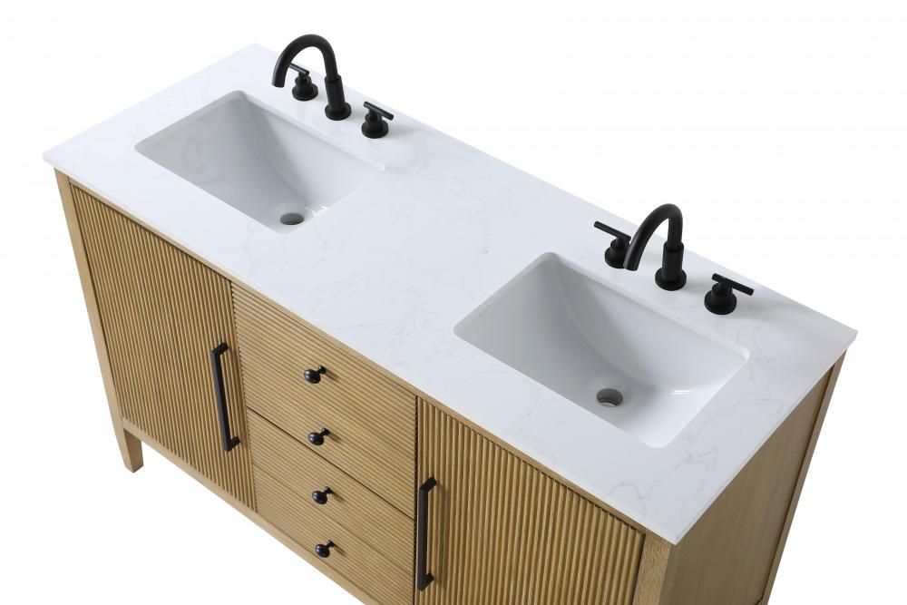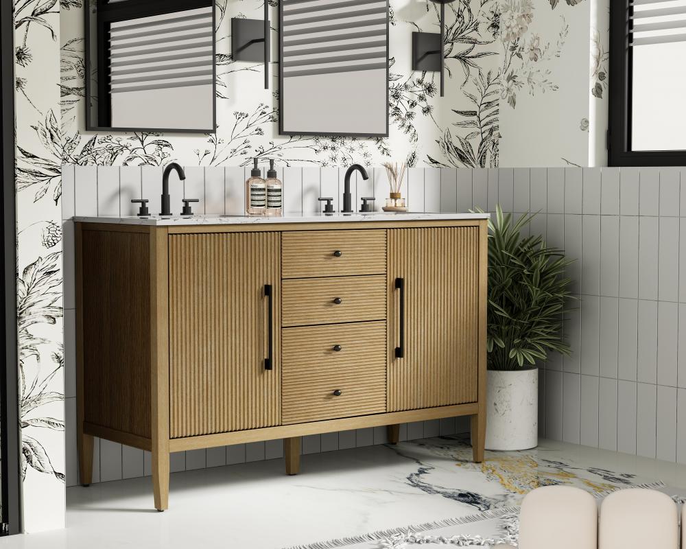 Designed with transitional elegance in mind, this bathroom vanity seamlessly blends traditional elements with modern functionality. Available in five stunning finishes, from the clean sophistication of Crisp White to the natural warmth of Honey Oak, the fluted door and drawer panels add subtle texture and charm. The white engineered marble countertop with natural veining exudes luxury, while the soft-closing doors and drawers with sleek black metal pulls offer a quiet, refined experience. Practicality is never compromised, with features like the U-shaped shelf for plumbing, deeper bottom drawer for ample storage, and pre-drilled faucet holes for easy customization. Whether your style leans modern or classic, this vanity is the perfect balance of beauty and function, appealing to customers with a taste for quality and style.