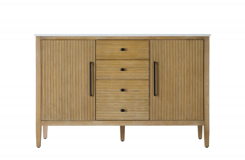 The textured fluted design on the door and drawer panels adds visual interest and elegance, creating a balance of classic charm and contemporary style.