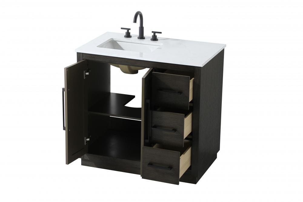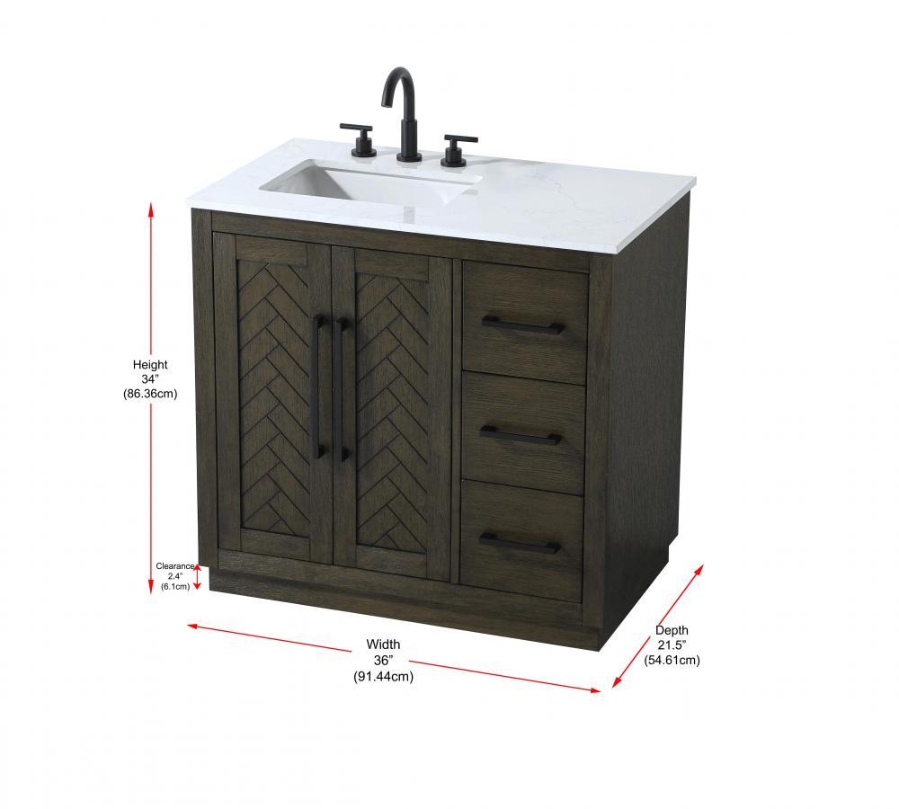 Vanity Cabinet 2Dr 3Dw W36"xD21.5"xH34" Chocolate Oak