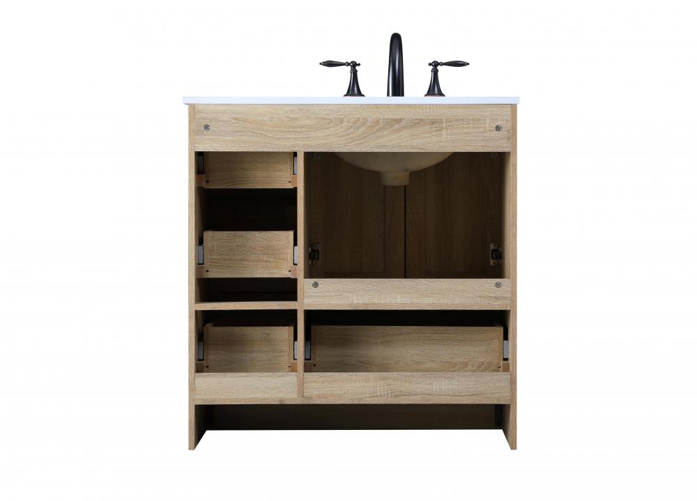 Crafted from durable MDF material, this vanity promises longevity and resilience, ensuring it stands the test of time while maintaining its modern allure.