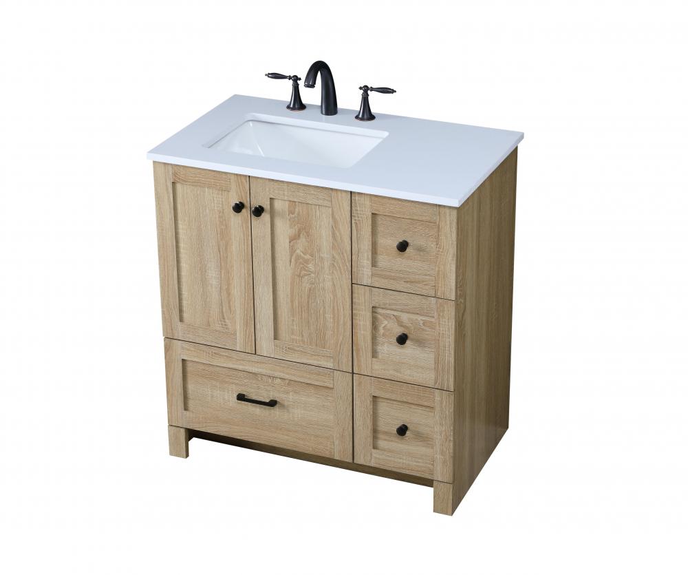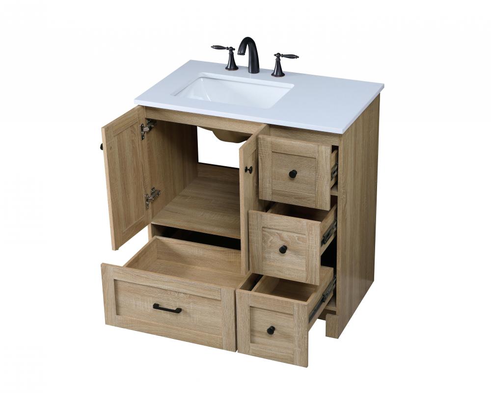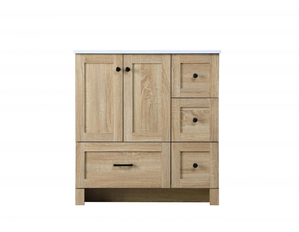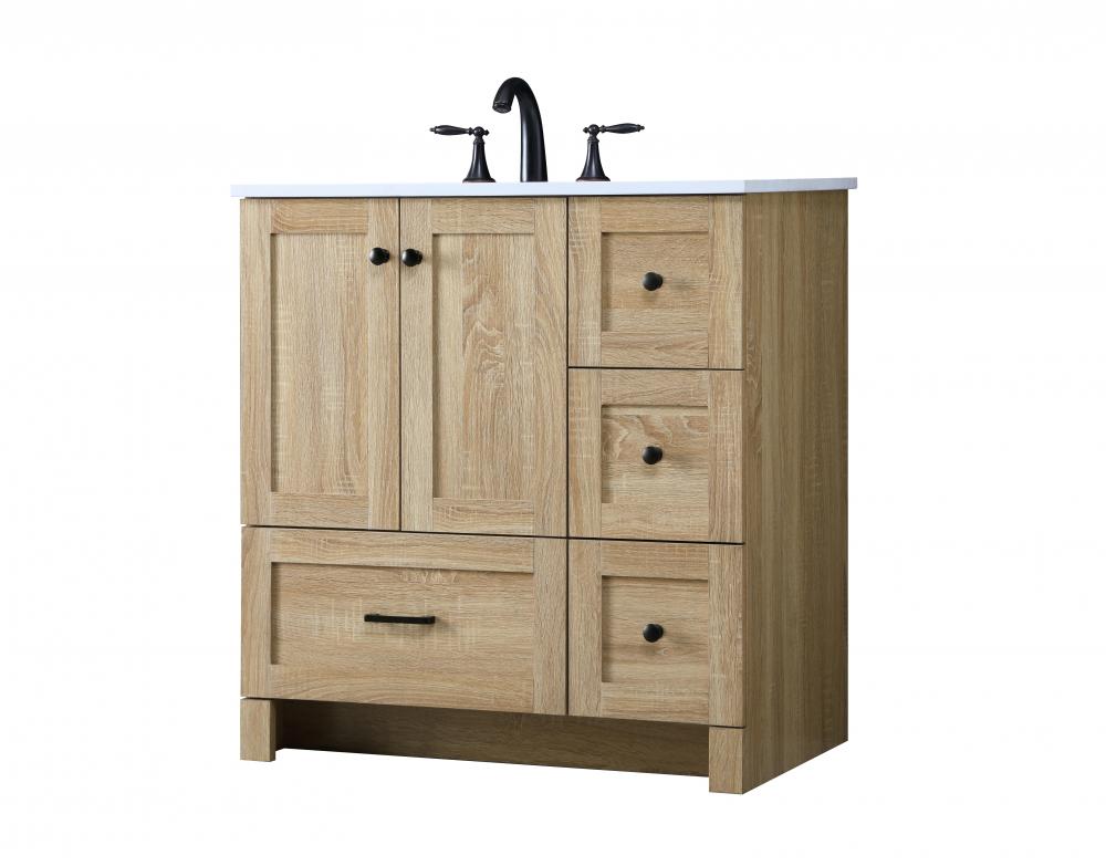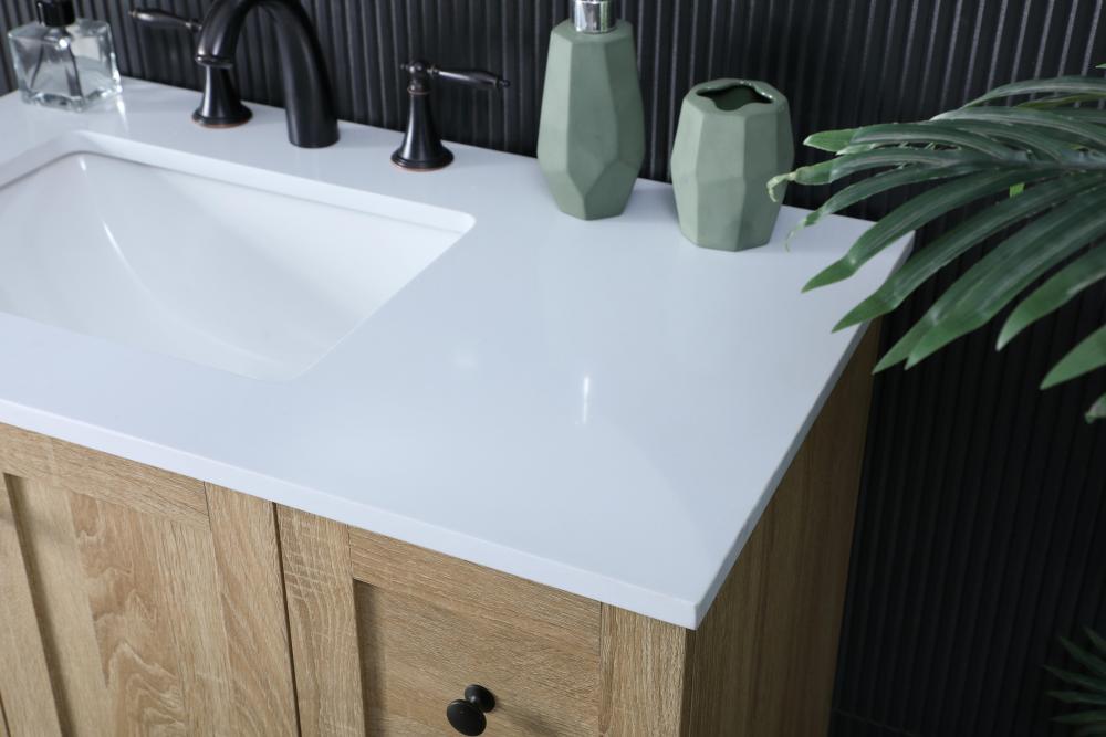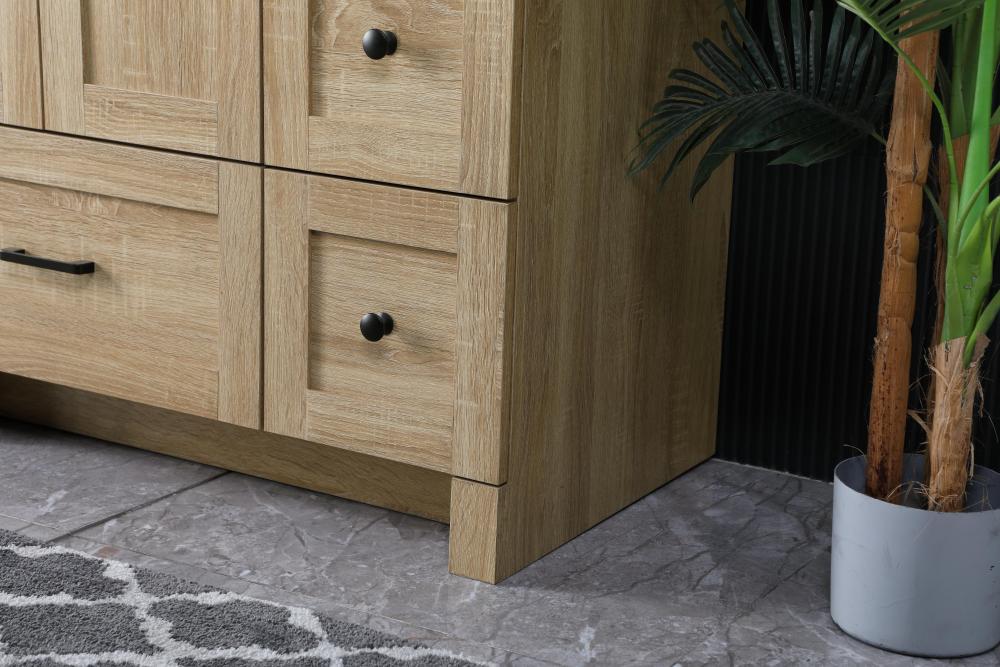 Revel in the beauty of a vanity that mimics the charm of real wood without the maintenance, boasting a faux wood look that adds a touch of natural warmth and rustic sophistication to your bathroom.