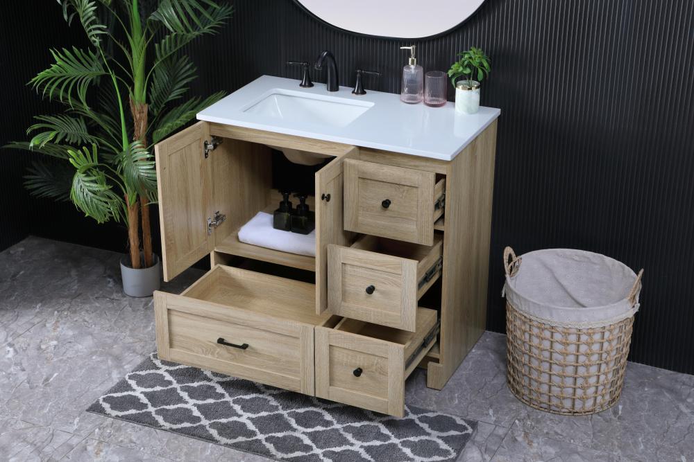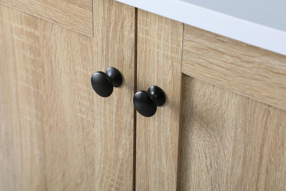 Indulge in the details with high-quality knobs and pulls adorning the drawers and doors, adding a touch of sophistication and functionality to your vanity.