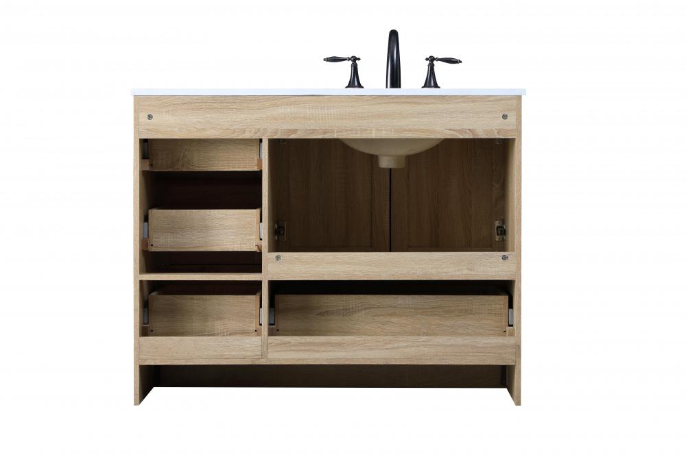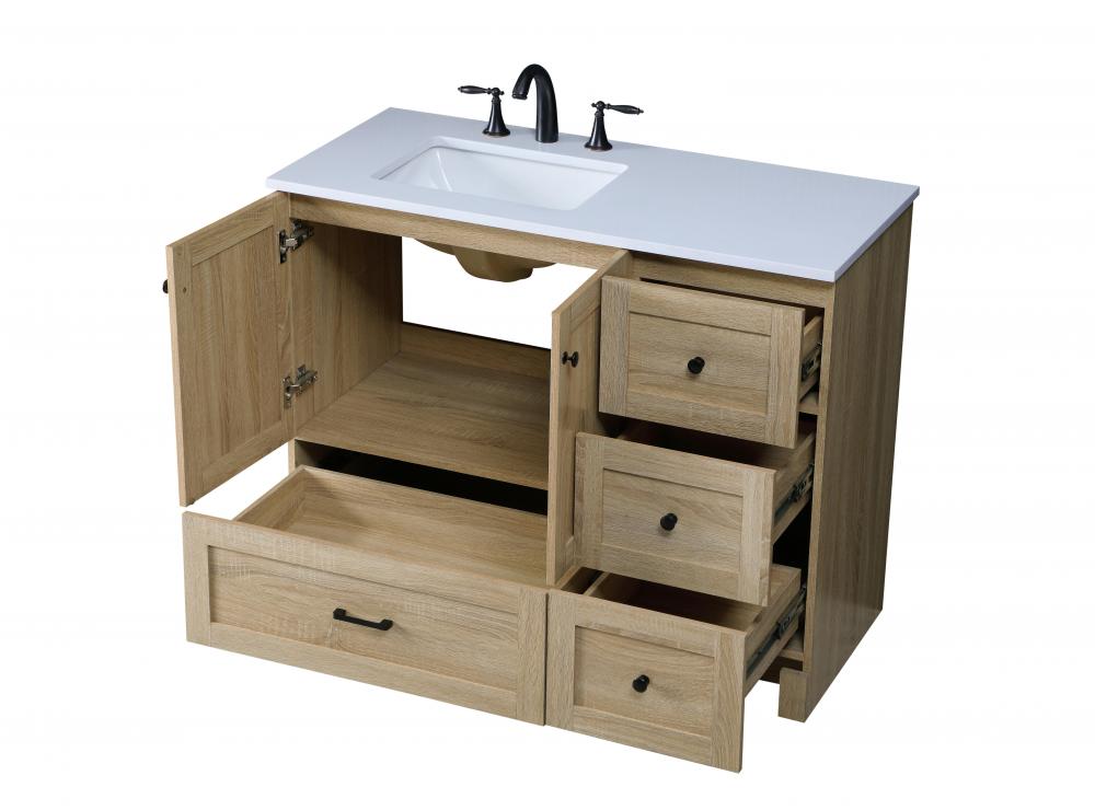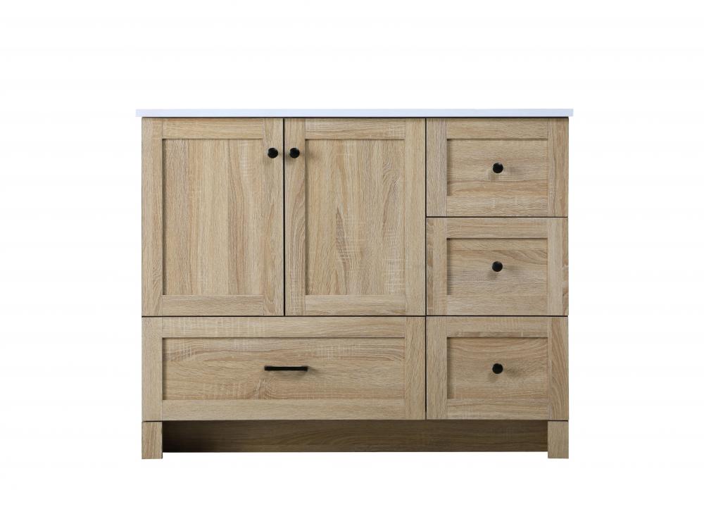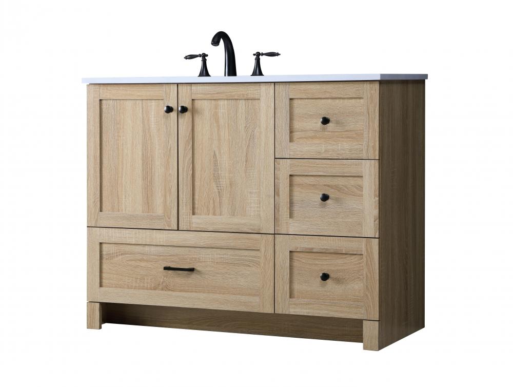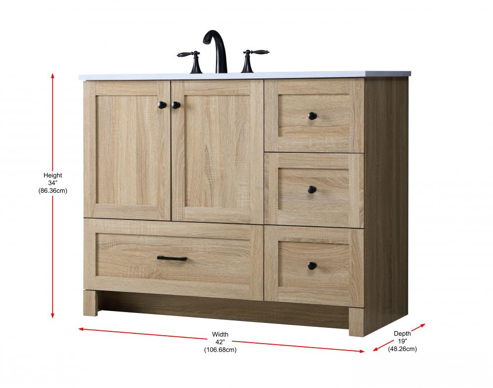 Revel in the beauty of a vanity that mimics the charm of real wood without the maintenance, boasting a faux wood look that adds a touch of natural warmth and rustic sophistication to your bathroom.