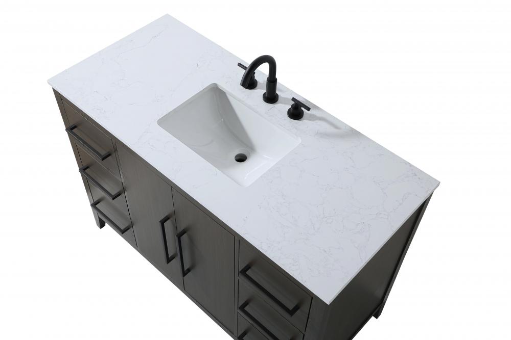 Topped with a white engineered marble countertop featuring elegant veining, this vanity adds a luxurious yet durable surface that’s easy to maintain.