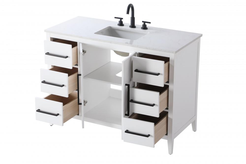 Built from sturdy MDF wood, this vanity is designed for long-lasting durability, offering both quality and style in one complete package which arrives fully assembled.