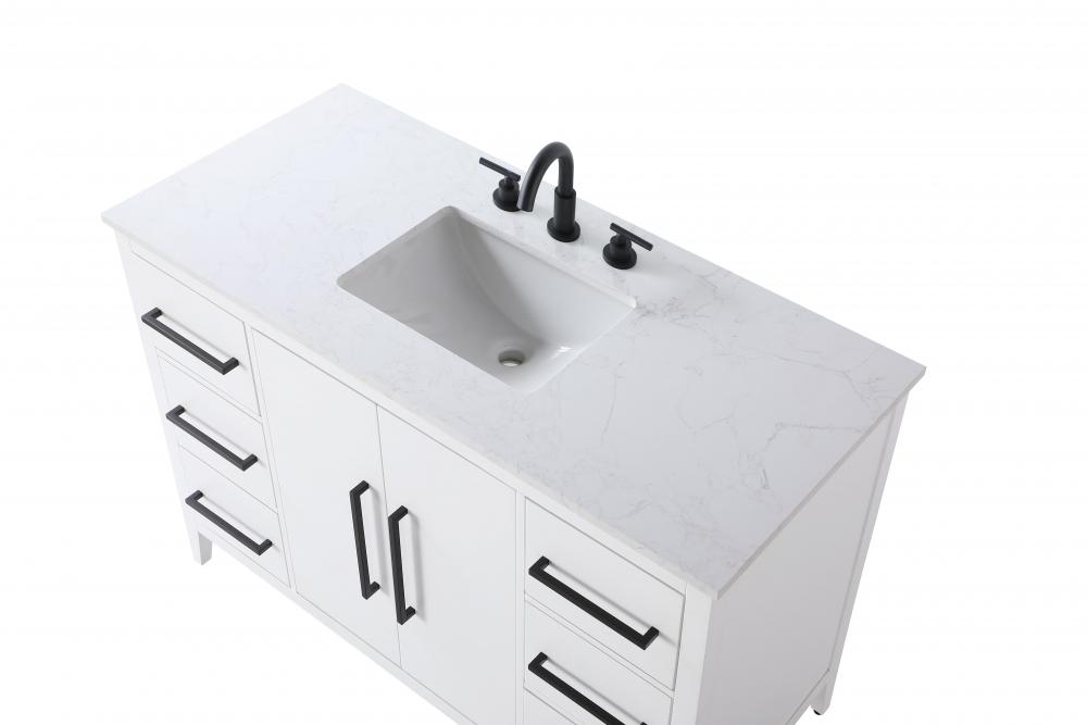 Topped with a white engineered marble countertop featuring elegant veining, this vanity adds a luxurious yet durable surface that’s easy to maintain.