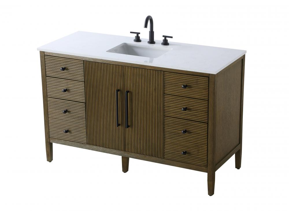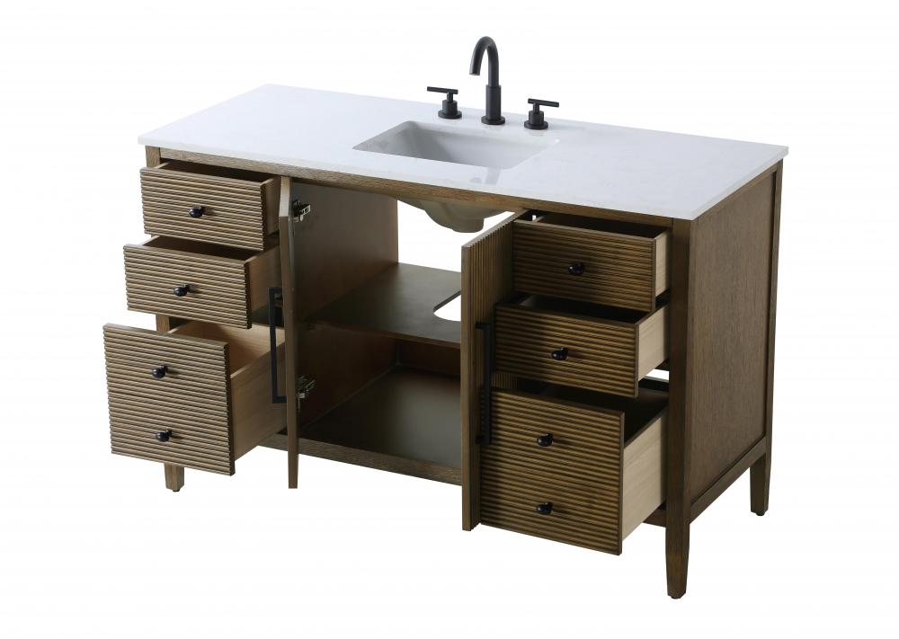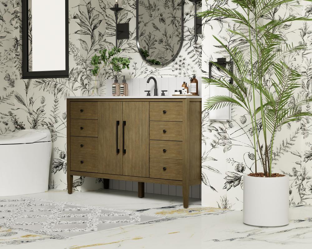 Designed with transitional elegance in mind, this bathroom vanity seamlessly blends traditional elements with modern functionality. Available in five stunning finishes, from the clean sophistication of Crisp White to the natural warmth of Honey Oak, the fluted door and drawer panels add subtle texture and charm. The white engineered marble countertop with natural veining exudes luxury, while the soft-closing doors and drawers with sleek black metal pulls offer a quiet, refined experience. Practicality is never compromised, with features like the U-shaped shelf for plumbing, deeper bottom drawer for ample storage, and pre-drilled faucet holes for easy customization. Whether your style leans modern or classic, this vanity is the perfect balance of beauty and function, appealing to customers with a taste for quality and style.