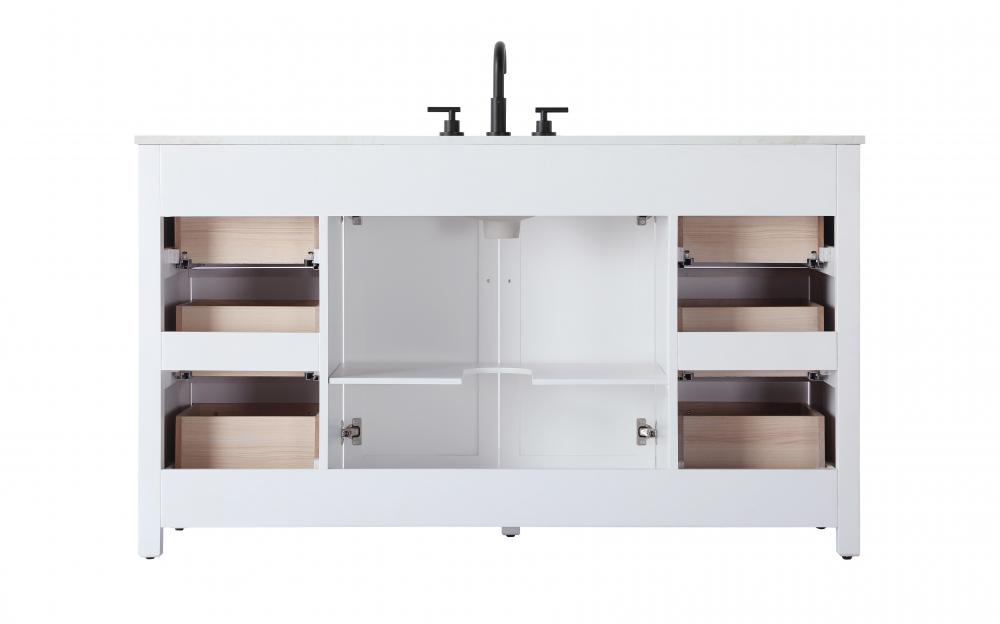 Perfect for those with an eye for detail and quality, this transitional vanity blends modern design with timeless elegance. Available in five stunning finishes, from Crisp White to Linen Oak, the wood grain visuals of the oak options bring warmth and character to any bathroom. The caning design on the Shaker-style door panels adds texture and a touch of refinement, while the soft-closing doors and drawers ensure smooth, quiet functionality. Topped with a white engineered marble countertop, the vanity offers both luxury and practicality, complete with pre-drilled faucet holes for customization. A concealed overflow and U-shaped shelf for plumbing make installation effortless, and the slender black metal pulls provide a sleek contrast.