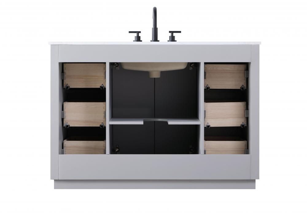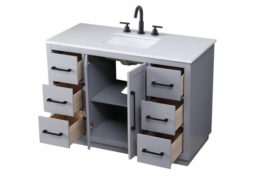 Crafted from durable MDF and solid wood material, this vanity promises longevity and resilience, ensuring it stands the test of time while maintaining its modern allure.