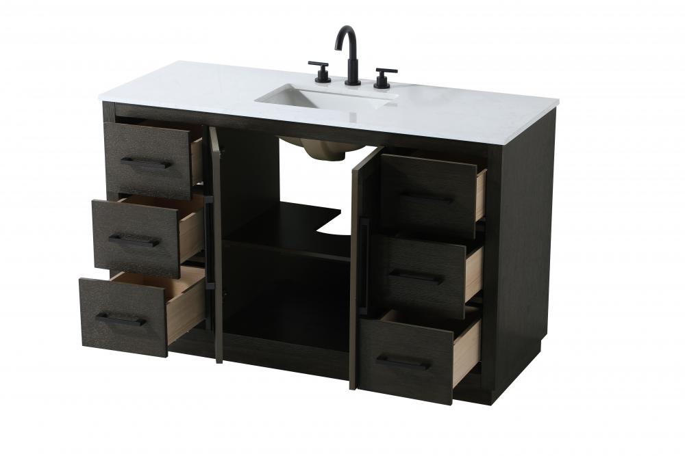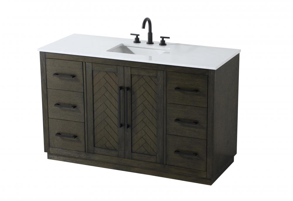 This transitional bathroom vanity comes in five elegant finishes to suit a variety of styles: Crisp White for a clean, timeless look, Sleek Grey for modern sophistication, Chocolate Oak (dark brown) for a rich.