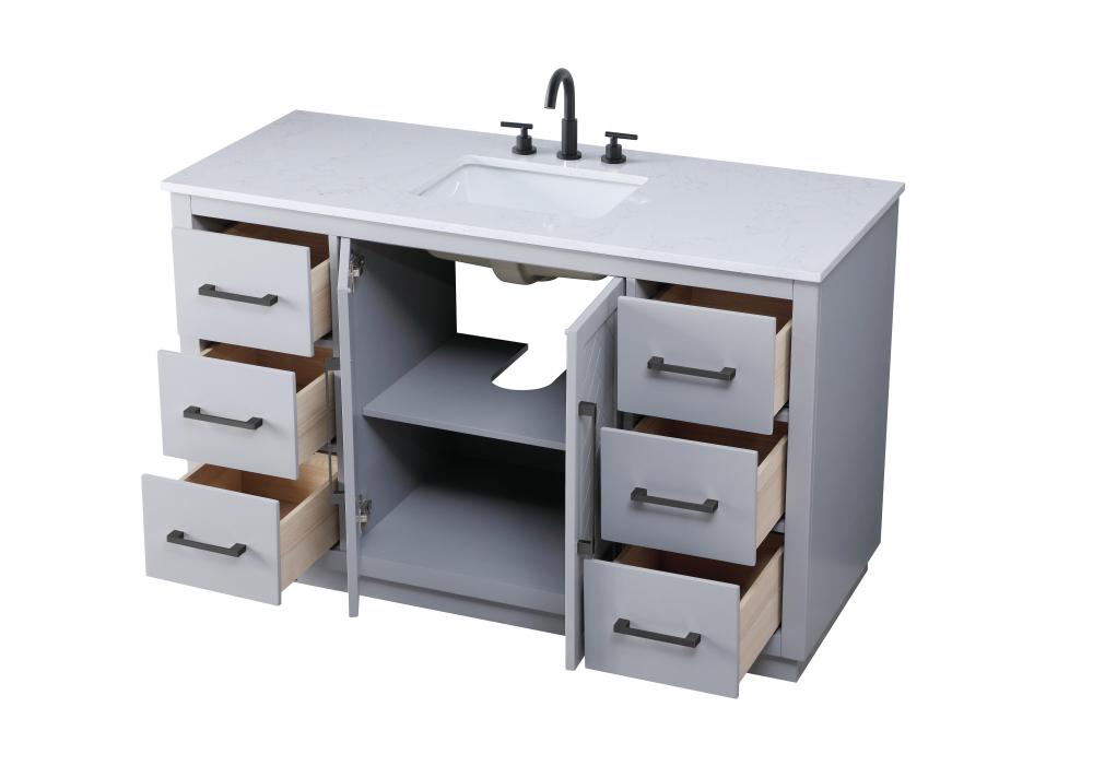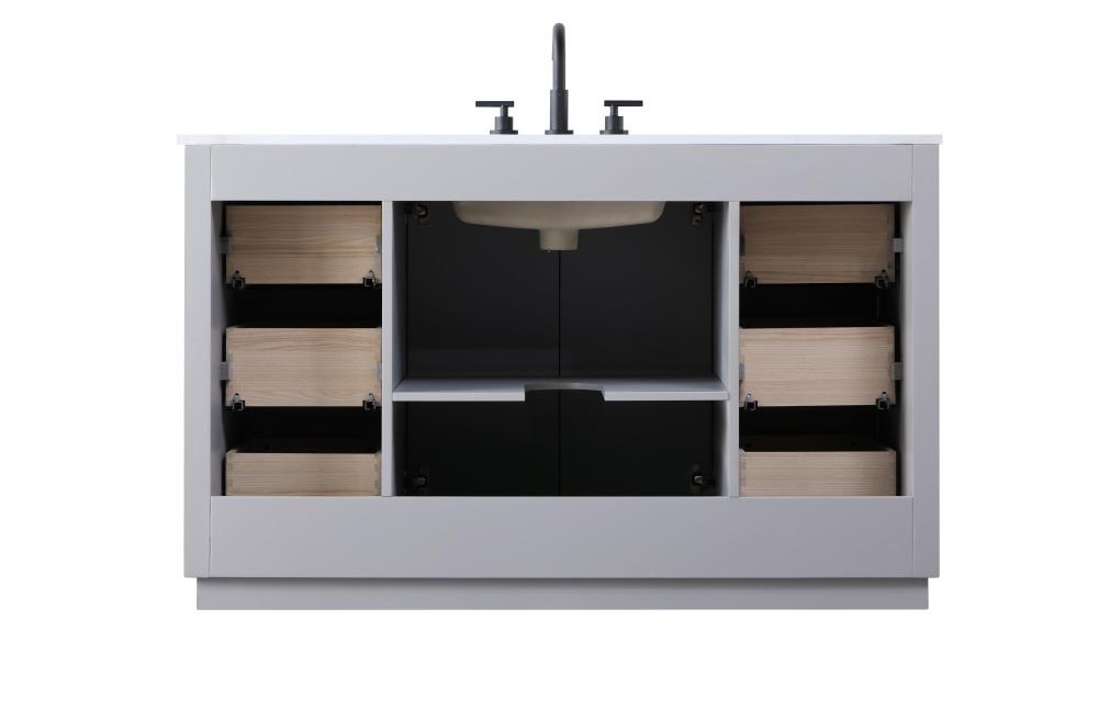 Crafted from durable MDF and solid wood material, this vanity promises longevity and resilience, ensuring it stands the test of time while maintaining its modern allure.