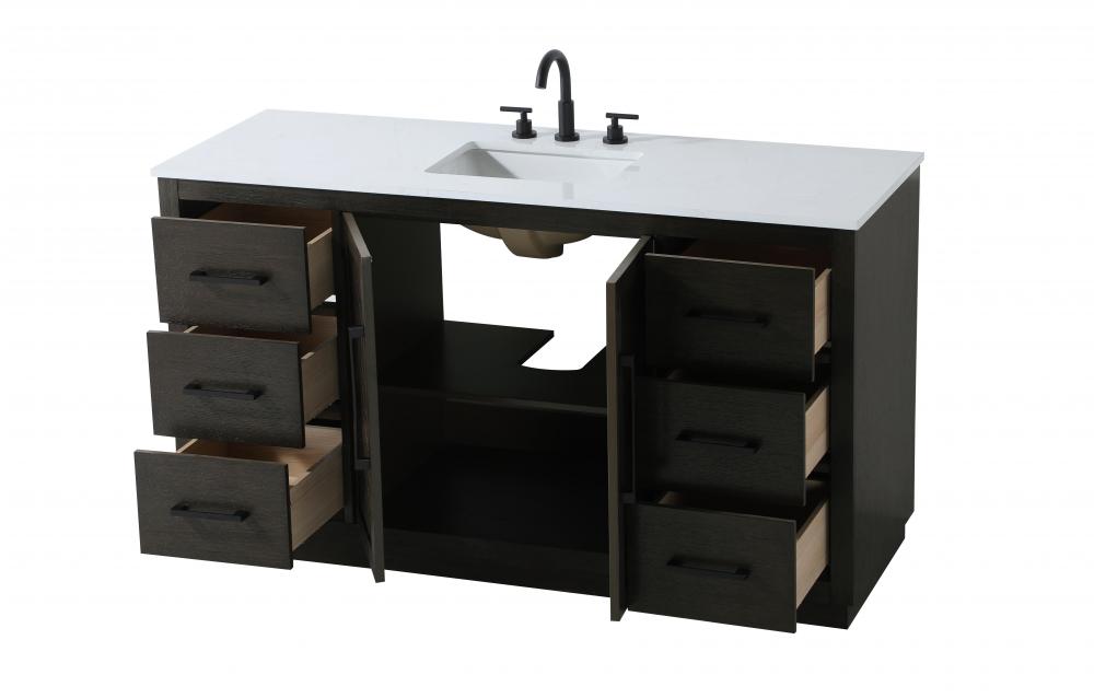Vanity Cabinet 2Dr 6Dw W60"xD21.5"xH34" Chocolate Oak