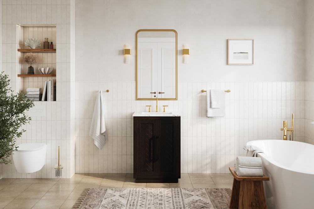 The vanity includes a concealed overflow, keeping the design sleek and uninterrupted, while ensuring practical overflow protection.