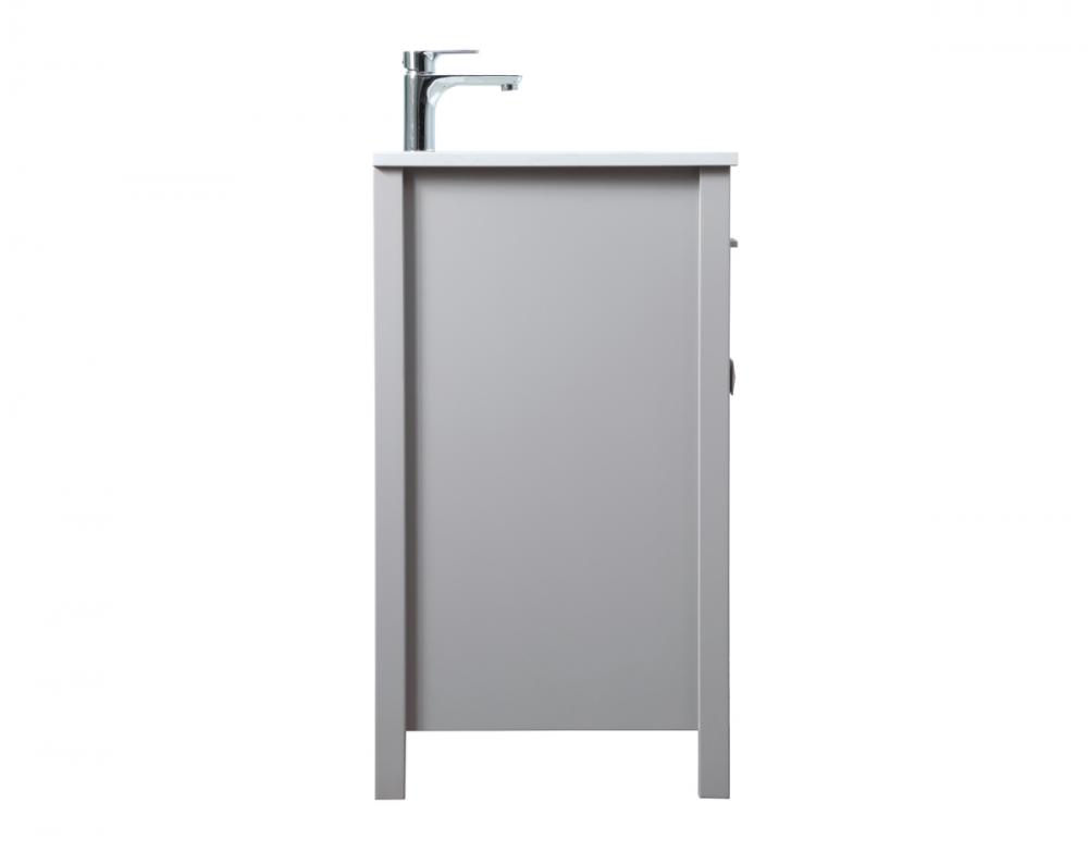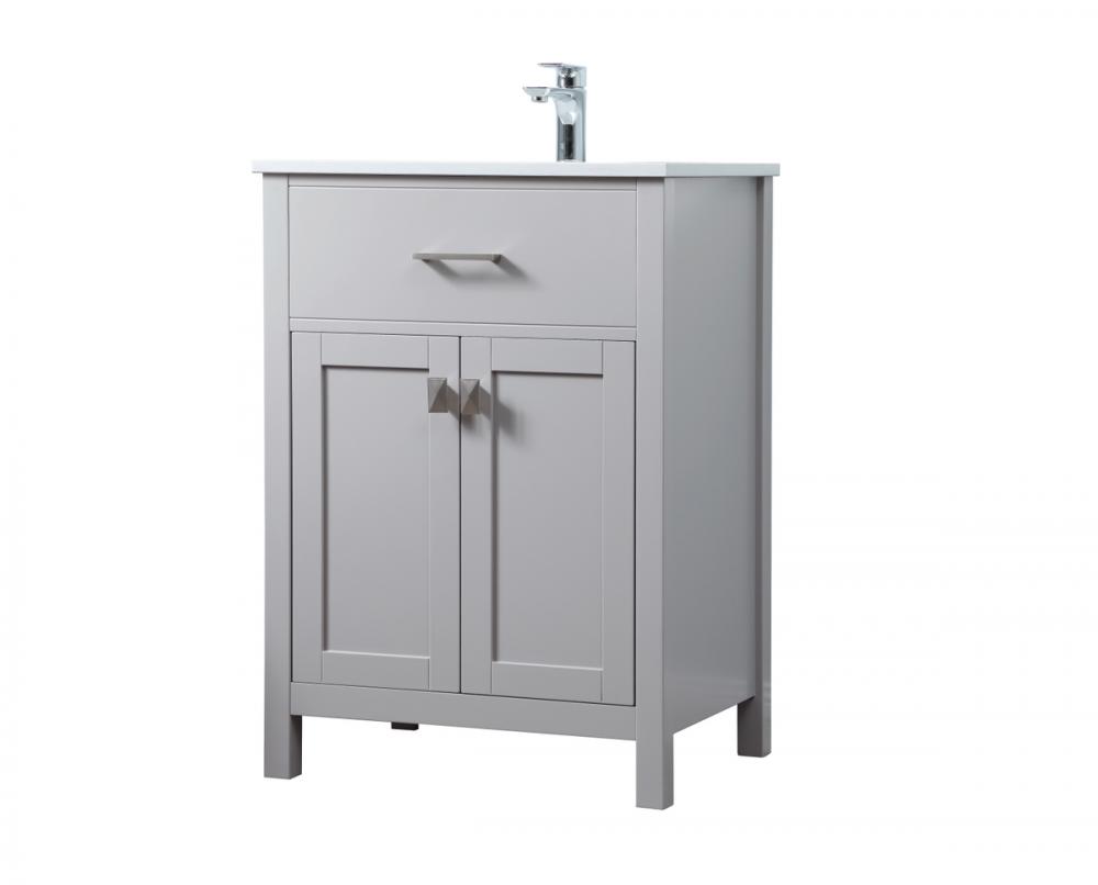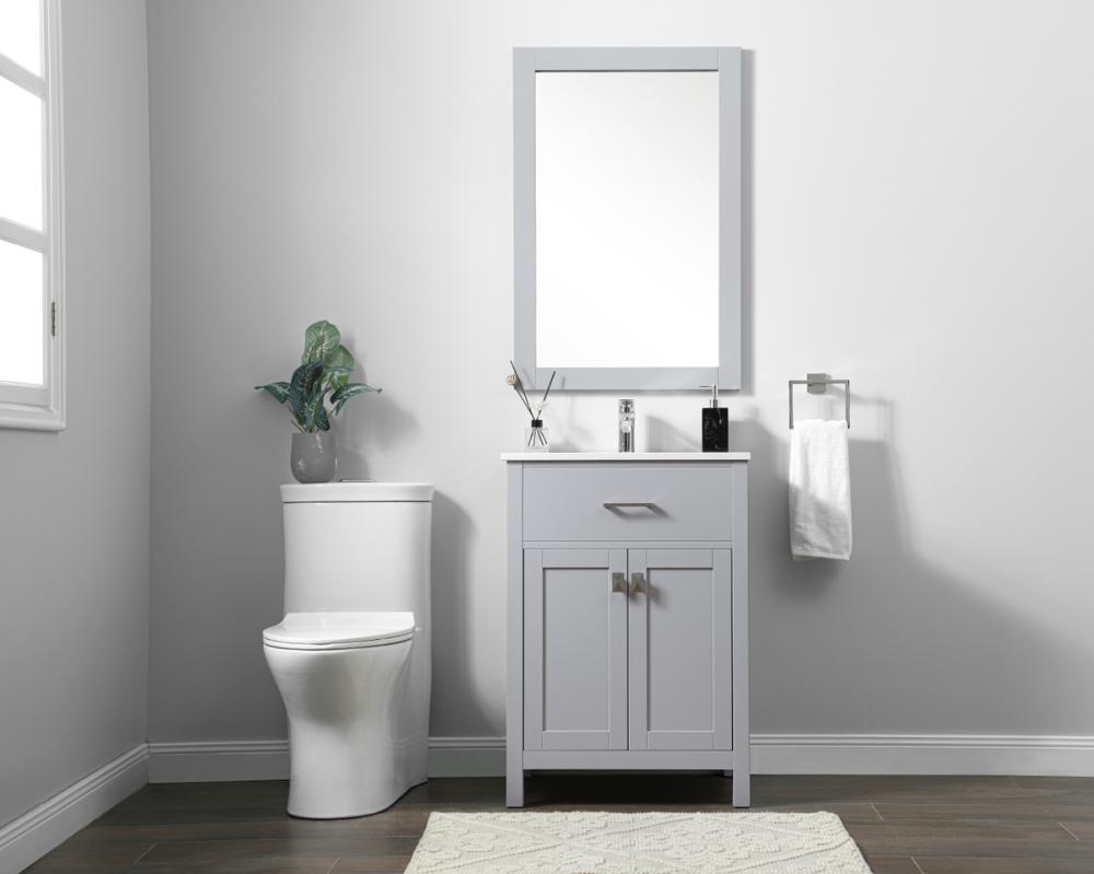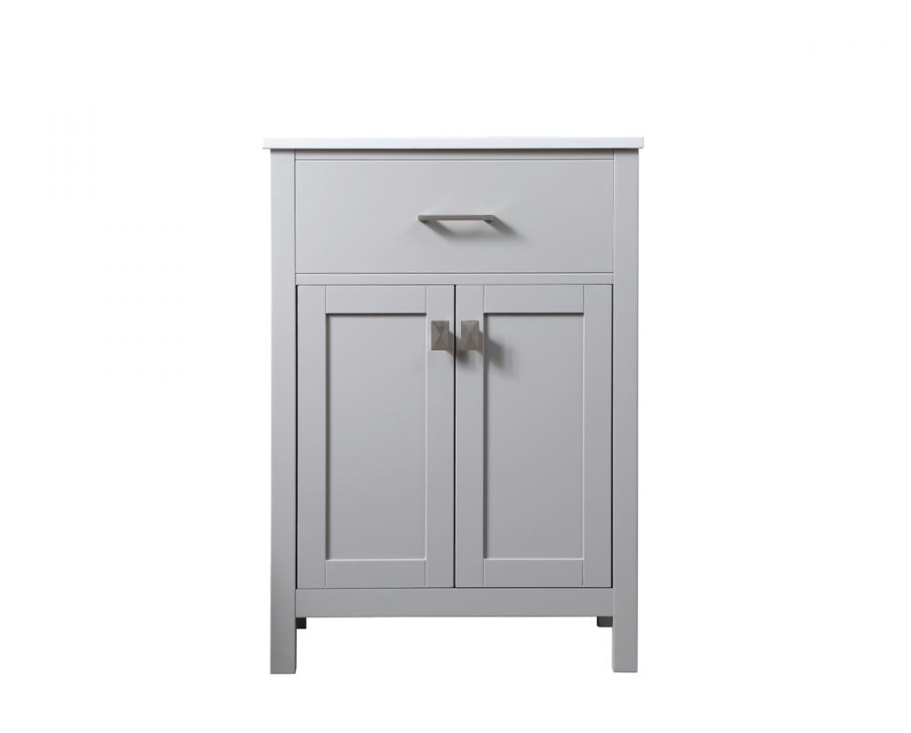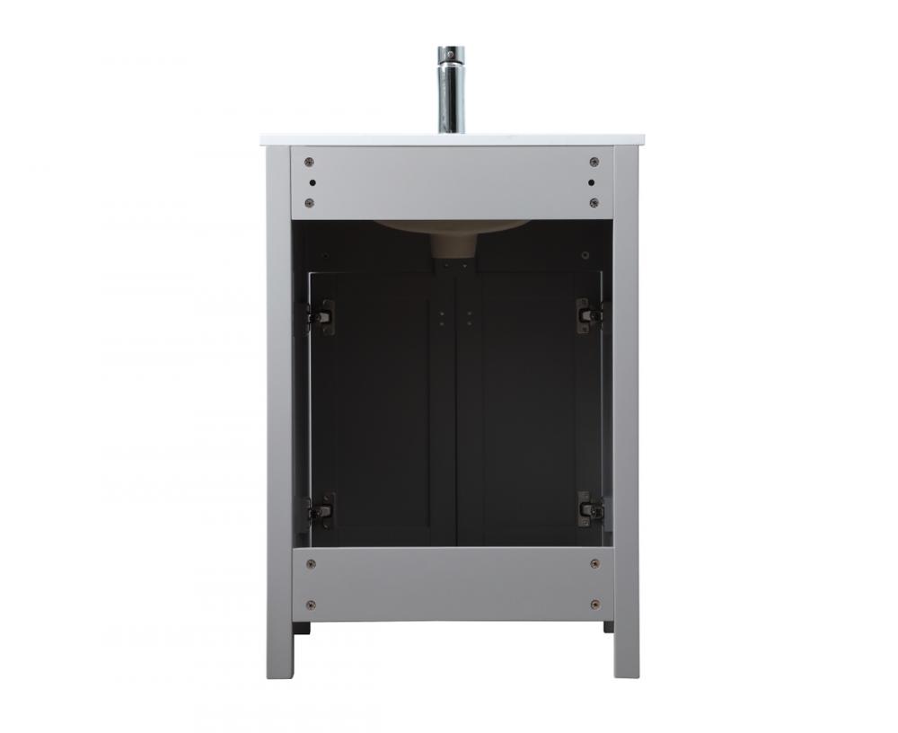 Elevate your bathroom aesthetic with our precision-crafted 24-inch vanity, featuring a chic straight edge cut and an engineered marble top that infuses a dash of modern elegance into your space. Designed for seamless access and ample storage, the vanity showcases a single functional cabinet with two soft close doors, paired with a faux top drawer. The sophisticated undermount porcelain sink seamlessly merges style with practicality, while the inclusion of stylish hardware adds a personalized touch and ensures convenient access to storage. Boasting a lower open shelf for additional storage, this vanity seamlessly blends functionality with style, providing a practical area for decor or essentials. Complete with a single pre-drilled hole for seamless faucet installation, our versatile vanity allows you to effortlessly personalize your bathroom, adding a final touch of elegance to your unique space. Redefine your bathroom experience with this stylish and functional addition.