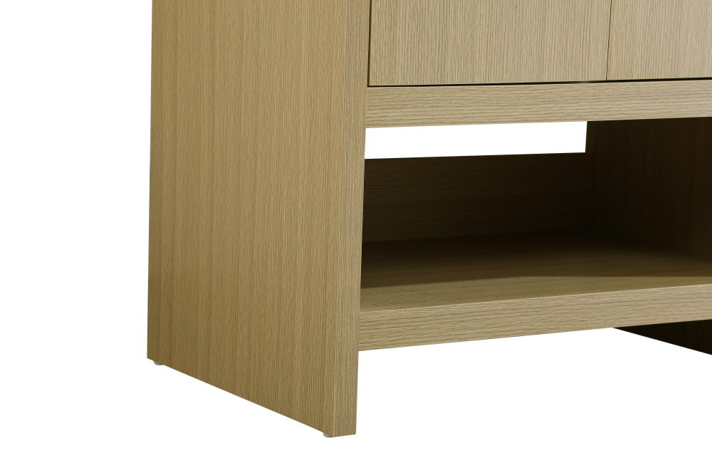 Open bottom shelf provides additional storage or display space, enhancing functionality and style.