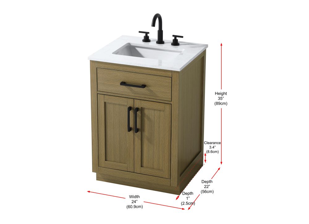 Vanity Cabinet 2Dr1Dw 24"W x 22"D x 35''H Chestnut Brown