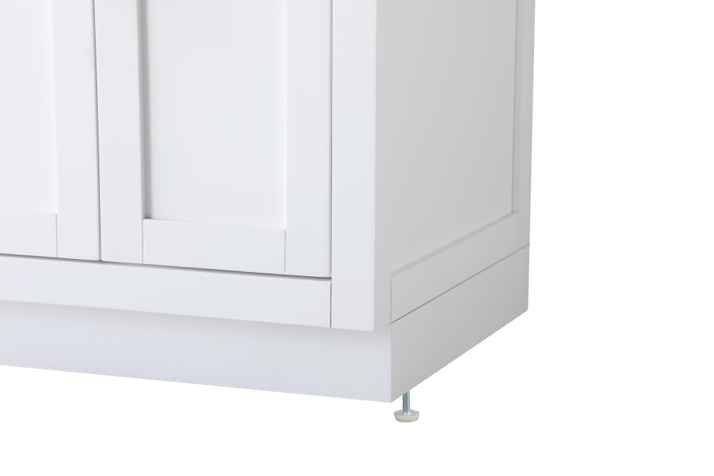 Toe kick design offers a streamlined look while providing easy cleaning access beneath the vanity.
