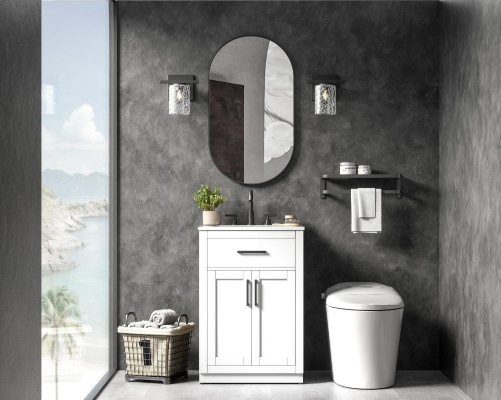 Perfectly suited for transitional and contemporary bathroom designs, this vanity seamlessly blends rustic and modern elements while being crafted from solid wood and MDF for exceptional durability and strength.