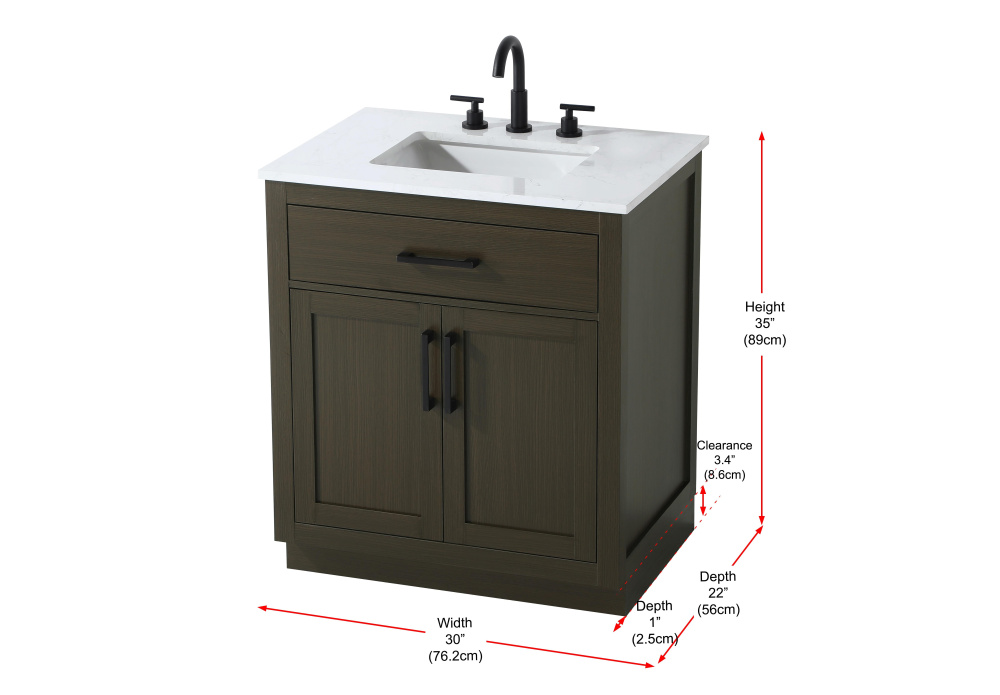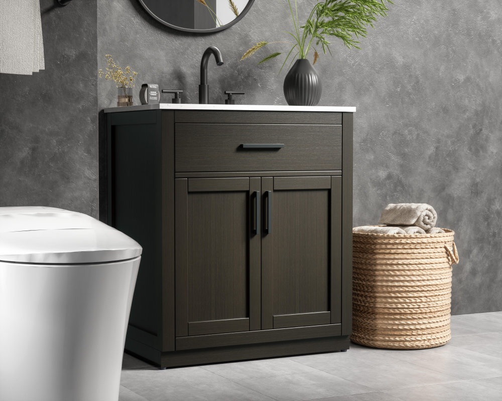 Vanity Cabinet 2Dr1Dw 30"W x 22"D x 35''H Mocha Brown