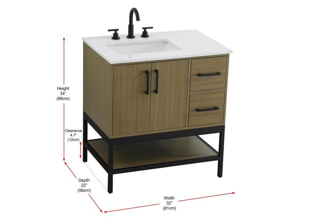 Elegant VF60732MHB - Vanity Cabinet 2Dr2Dw 32"x22"x34" Honey Brown