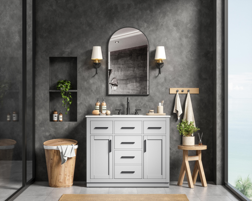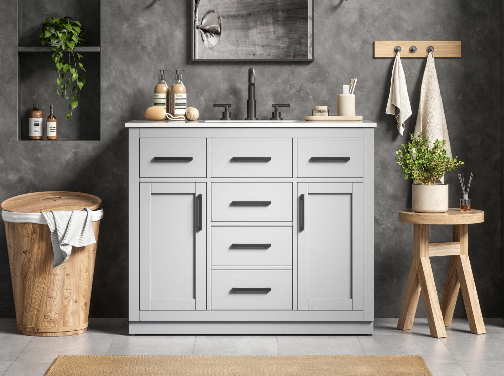 Perfectly suited for transitional and contemporary bathroom designs, this vanity seamlessly blends rustic and modern elements while being crafted from solid wood and MDF for exceptional durability and strength.
