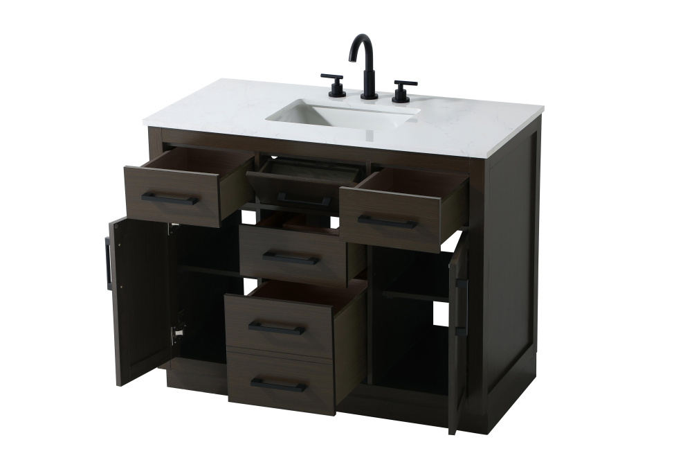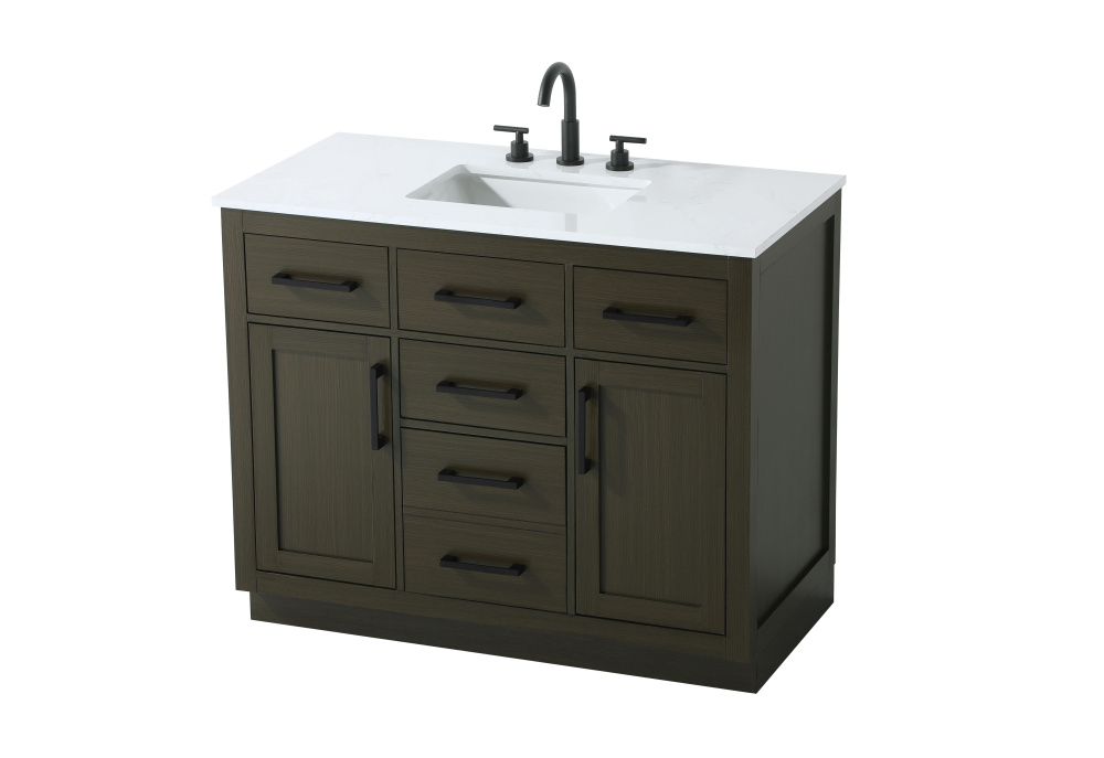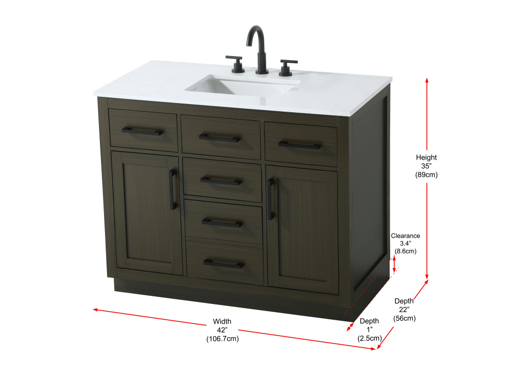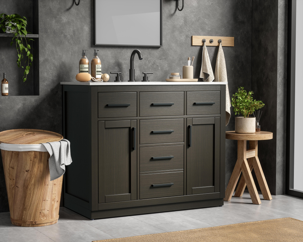 Vanity Cabinet 2Dr5Dw 42"W x 22"D x 35''H Mocha Brown