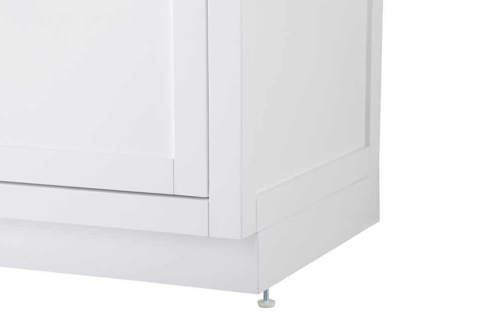 Toe kick design offers a streamlined look while providing easy cleaning access beneath the vanity.